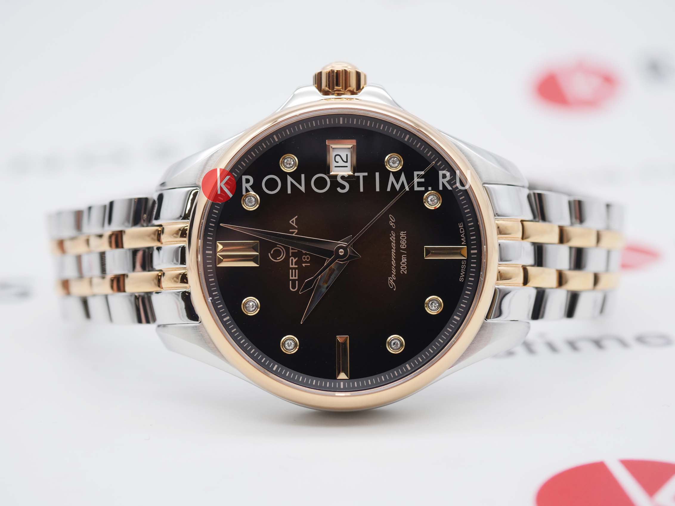 Аксессуар обладает изящным силуэтом, отражающим классический стиль и элегантность. Циферблат украшен восемью роскошными бриллиантами оттенка Top Wesselton. Калибр Powermatic с автоподзаводом не только имеет 80-часовой запас хода, но и оснащен балансирной пружиной Nivachron ™, гарантирующей надежную точность, не подверженную влиянию магнитных полей. Сверкающие бриллианты и изысканные детали создают неподвластную времени элегантность.. Концепция DS ConceptDS ConceptDouble Security Concept, обозначает двойную надёжность и безупречную точность часов Certina. Двойная система защиты подразумевает обеспечение максимальной устойчивости к ударам и высоких показателей водонепроницаемости. гарантирует повышенную ударопрочность часов и сохранение водонепроницаемости до 20 бар. Одностороннее антибликовое покрытие сапфирового стекла. Корпус и браслет из хирургической стали 316L.. Диаметр корпуса: 34,5 мм.
