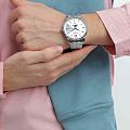 Часы Citizen AK5000-54A произведены в Японии и оснащены надёжным кварцевым механизмом калибра Citizen 6324. Корпус выполнен из нержавеющей стали и имеет классическую круглую форму диаметром 42 мм. Минеральное стеклоМинеральное стеклоМинеральное стекло представляет собой искусственно выращенный минерал кварца. Такое стекло отличается особой устойчивостью к повреждениям и царапинам. Уступает по некоторым качествам сапфировому стеклу. защищает серебристый циферблат, украшенный эффектом солнечных лучей по технологии Sunray. На циферблате расположены клиновидные стрелки в стиле Dauphine, метки в виде штрихов и римская цифра в положении 12 часов, а также индикатор фазы Луны — одно из самых востребованных усложнений в часовой классике. Часы защищены от воды по стандарту 50WR, что позволяет не бояться случайных брызг и дождя. Заводная головка отличается рифлёной поверхностью для удобства использования. Стальной браслет с раскладной застёжкойРаскладная застёжкаТакой тип застёжки используется только на браслетах из металла. Она никогда не раскрывается полностью, происходит разделение на 2 и более частей. Раскладывающая застёжка снизит вероятность потери часов к минимуму. обеспечивает комфорт и надежную фиксацию на руке. В качестве элемента питания используется батарейка SR621SW, обеспечивающая автономную работу до двух лет.
