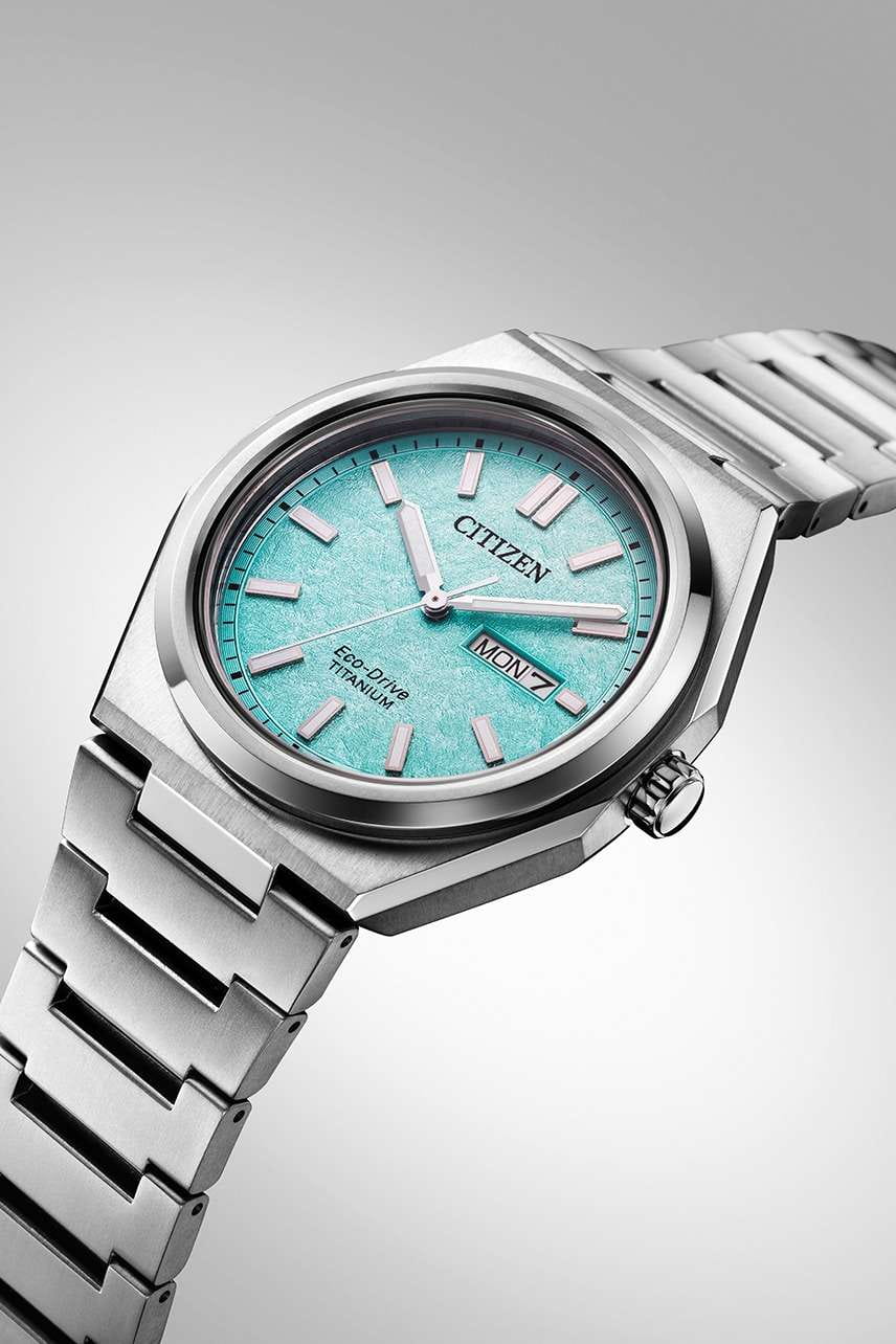 Часы Citizen AW0130-85M сочетают в себе японское качество, современный стиль и передовые технологии. Корпус и браслет модели выполнены из суперлегкого титана, что обеспечивает легкость и комфорт в носке, а также высокую прочность и устойчивость к коррозии. Диаметр корпуса составляет 39,5 мм, толщина — 9,8 мм, вес часов — всего около 91 грамма. Бирюзовый текстурный циферблат украшен центральными часовой, минутной и секундной стрелками, а также апертурой даты и дня недели в положении 3 часа. Надежный кварцевый механизм Citizen J800 работает на инновационной системе Eco-Drive, питается от солнечной энергии и не требует замены батарейки, обеспечивая запас хода до 240 дней. Часы оснащены функцией индикации уровня заряда EOLEOLПредставляет собой систему, уведомляющую владельца часов о необходимости замены элемента питания. За 2 недели до полного разряда батарейки секундная стрелка перестаёт ходить чётко и начинает перепрыгивать на 3-4 деления., что позволяет всегда быть уверенным в их работе. Сапфировое стеклоСапфировое стеклоПрочный и надёжный материал из кристалла сапфира синтетического происхождения, характеризующийся особой твёрдостью и устойчивостью к царапинам и повреждениям. надежно защищает циферблат от царапин, а водозащита 100 метров позволяет использовать часы во время плавания без погружения. Стрелки и часовые метки с люминесцентным покрытиемЛюминесцентное покрытиеПозволяет считывать показания времени в темноте. Производители наносят на стрелки, часовые индексы, безель или поверхность циферблата светонакопительный состав, дающий холодное свечение. обеспечивают отличную читаемость даже в темноте. Раскладная застёжкаРаскладная застёжкаТакой тип застёжки используется только на браслетах из металла. Она никогда не раскрывается полностью, происходит разделение на 2 и более частей. Раскладывающая застёжка снизит вероятность потери часов к минимуму. на титановом браслете обеспечивает дополнительное удобство.