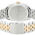 Часы Citizen BI5096-53L — это стильная и надежная модель японского производства, оснащённая высокоточным кварцевым механизмом Citizen G111. Круглый корпус диаметром 42 мм выполнен из нержавеющей стали, что придаёт изделию элегантный и современный вид, а также защищает от внешних воздействий. БезельБезельВнешний ободок, закрепляющий стекло. В спортивных часах так называется поворотное кольцо с делениями на циферблате, выполняет роль таймера – замеряет отрезки времени на шкале. Неподвижный безель – элемент декора. Однонаправленно вращающийся безель на дайверских часах позволяет фиксировать моменты погружения и выныривания на поверхность. с элегантным золотистым IP-покрытиемIP-покрытиеМетод ионного напыления. Демонстрирует повышенную устойчивость к истиранию, окислению и химическим веществам. Под воздействием высокого давления и температуры около 1500°C молекулы металла надёжно соединяются с частицами корпуса часов.. Синий циферблат оформлен минималистично, с метками в виде аккуратных штрихов и заострёнными прямоугольными стрелками в стиле Baton с люминесцентным покрытиемЛюминесцентное покрытиеПозволяет считывать показания времени в темноте. Производители наносят на стрелки, часовые индексы, безель или поверхность циферблата светонакопительный состав, дающий холодное свечение. для удобного считывания времени даже в темноте. Минеральное стеклоМинеральное стеклоМинеральное стекло представляет собой искусственно выращенный минерал кварца. Такое стекло отличается особой устойчивостью к повреждениям и царапинам. Уступает по некоторым качествам сапфировому стеклу. гарантирует защиту от царапин и сохраняет презентабельный внешний вид на долгое время. Окошко календаря с отображением числа расположено в позиции 6 часов, что добавляет функциональности и подчеркивает современный стиль модели. Рифленая заводная головка обеспечивает лёгкость настройки, а стальной браслет с частичным золотистым IP-покрытиемIP-покрытиеМетод ионного напыления. Демонстрирует повышенную устойчивость к истиранию, окислению и химическим веществам. Под воздействием высокого давления и температуры около 1500°C молекулы металла надёжно соединяются с частицами корпуса часов. и раскладывающейся застёжкой надёжно фиксирует часы на запястье. Водозащита до 50 метров позволяет не опасаться случайного контакта с водой в повседневной жизни.