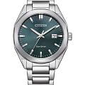 Citizen BM7620-83X — элегантные японские часы с современным кварцевым механизмом Citizen E111 и инновационной системой Eco-Drive, которая работает от солнечной энергии и не требует замены батарейки, обеспечивая автономную работу до 180 дней. Корпус и браслет выполнены из нержавеющей стали, что придает часам стильный и износостойкий внешний вид. Темно-зеленый циферблат с изящным эффектом Sunray украшен минималистичными часовыми метками в виде штрихов и дополнен окошком даты на позиции 3 часа для удобства контроля времени. Стрелки с люминесцентным покрытиемЛюминесцентное покрытиеПозволяет считывать показания времени в темноте. Производители наносят на стрелки, часовые индексы, безель или поверхность циферблата светонакопительный состав, дающий холодное свечение. обеспечивают отличную читаемость времени даже в темное время суток. Прочное минеральное стеклоМинеральное стеклоМинеральное стекло представляет собой искусственно выращенный минерал кварца. Такое стекло отличается особой устойчивостью к повреждениям и царапинам. Уступает по некоторым качествам сапфировому стеклу. надежно защищает циферблат от случайных повреждений. Водозащита 100WR позволяет использовать часы во время плавания и занятий спортом без риска повреждения. Диаметр корпуса составляет 38 мм, толщина — 9,7 мм, вес — 118 грамм, что делает модель удобной для ежедневного ношения. Браслет оснащен надежной раскладной застёжкойРаскладная застёжкаТакой тип застёжки используется только на браслетах из металла. Она никогда не раскрывается полностью, происходит разделение на 2 и более частей. Раскладывающая застёжка снизит вероятность потери часов к минимуму. для максимального комфорта. Функции индикации заряда EOLEOLПредставляет собой систему, уведомляющую владельца часов о необходимости замены элемента питания. За 2 недели до полного разряда батарейки секундная стрелка перестаёт ходить чётко и начинает перепрыгивать на 3-4 деления. и предотвращения перезарядки делают эксплуатацию часов простой и безопасной.