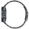 Citizen CC4059-64L — это японский кварцевый хронографХронографФункция позволяет измерять отрезки времени с особой точностью: часы, минуты, секунды. Верным признаком хронографа является наличие на циферблате 3 дополнительных окошек-счётчиков., сочетающий передовые технологии и современный дизайн. Корпус диаметром 44,6 мм выполнен из инновационного материала Super Titanium с черным DLC-покрытиемDLC-покрытиеDiamond like carbon - одно из лучших видов покрытия, представляющее собой углерод с алмазными свойствами. На поверхность материала наносятся распавшиеся молекулы углерода, превращающиеся в плёнку из алмазоподобных связей, которая перенимает твёрдость алмаза., который отличается исключительной прочностью, легкостью и устойчивостью к царапинам, а титановый безельБезельВнешний ободок, закрепляющий стекло. В спортивных часах так называется поворотное кольцо с делениями на циферблате, выполняет роль таймера – замеряет отрезки времени на шкале. Неподвижный безель – элемент декора. Однонаправленно вращающийся безель на дайверских часах позволяет фиксировать моменты погружения и выныривания на поверхность. с фиолетовым DLC-покрытиемDLC-покрытиеDiamond like carbon - одно из лучших видов покрытия, представляющее собой углерод с алмазными свойствами. На поверхность материала наносятся распавшиеся молекулы углерода, превращающиеся в плёнку из алмазоподобных связей, которая перенимает твёрдость алмаза.. Фиолетовый циферблат оснащен стрелками и метками с люминесцентным покрытиемЛюминесцентное покрытиеПозволяет считывать показания времени в темноте. Производители наносят на стрелки, часовые индексы, безель или поверхность циферблата светонакопительный состав, дающий холодное свечение., что обеспечивает отличную читаемость в любых условиях. Часы работают на механизме F950 с системой Eco-Drive, не требующей замены батарейки — питание осуществляется от солнечной энергии, а запас хода составляет до 1,5 лет, до 5 лет в режиме энергосбережения. Модель оснащена передовой спутниковой системой GPSGPSСистема спутниковой навигации. Часы оснащены приёмником GPS-сигнала, который получает необходимую информацию по GSM, GPRS, со спутников. Принимая сигнал, наручные часы могут установить точные показатели времени и даты, часовой пояс, сообщить местоположение своего владельца.