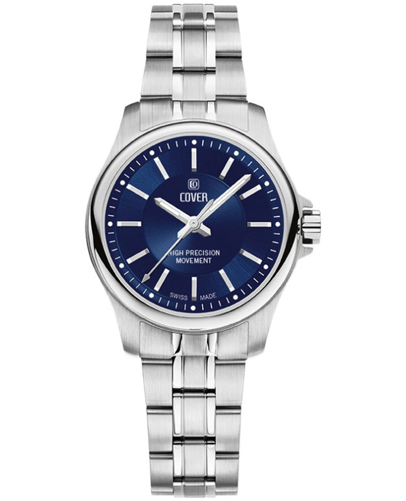 Женские наручные часы Cover CO201.03 из коллекции Marville сочетают в себе классический дизайн и высокую точность швейцарского производства. Модель обладает круглым корпусом диаметром 28 мм, изготовленным из нержавеющей стали, что придает изделию благородный внешний вид. Синий циферблат оснащен стрелками с люминесцентным покрытиемЛюминесцентное покрытиеПозволяет считывать показания времени в темноте. Производители наносят на стрелки, часовые индексы, безель или поверхность циферблата светонакопительный состав, дающий холодное свечение..  Для защиты используется сапфировое стеклоСапфировое стеклоПрочный и надёжный материал из кристалла сапфира синтетического происхождения, характеризующийся особой твёрдостью и устойчивостью к царапинам и повреждениям. с антибликовым покрытиемАнтибликовое покрытиеСлой оксида металла в 0,13-0,3 микрон, благодаря которому стекло часов не бликует и не отражает свет. Антибликовое покрытие уменьшает отражение света в 10 раз, обеспечивая отличную читаемость показателей циферблата., обеспечивающее прочную защиту от царапин и превосходную читаемость времени даже при ярком свете. Часы работают на высокоточном кварцевом механизме ETA, гарантирующем исключительную точность хода с погрешностью около 20 секунд в месяц. Браслет выполнен из нержавеющей стали и оснащен раскладной застежкойРаскладная застёжкаТакой тип застёжки используется только на браслетах из металла. Она никогда не раскрывается полностью, происходит разделение на 2 и более частей. Раскладывающая застёжка снизит вероятность потери часов к минимуму., обеспечивающей комфортное ношение и безопасность. Водонепроницаемость достигает 10 атмосфер (100 метров), что позволяет использовать их во время плавания и других водных видов спорта, однако не рекомендуется для глубоководного дайвинга. Эти швейцарские часы станут идеальным дополнением как классического, так и современного образа.