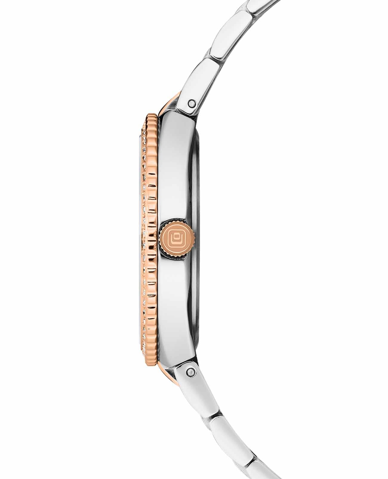 Cover Jumeira CO218.05 – элегантные женские часы, сочетающие современный дизайн и швейцарское качество. Корпус диаметром 36 мм выполнен из нержавеющей стали 316L, что придаёт модели роскошный вид и обеспечивает долговечность. БезельБезельВнешний ободок, закрепляющий стекло. В спортивных часах так называется поворотное кольцо с делениями на циферблате, выполняет роль таймера – замеряет отрезки времени на шкале. Неподвижный безель – элемент декора. Однонаправленно вращающийся безель на дайверских часах позволяет фиксировать моменты погружения и выныривания на поверхность. с PVD-покрытиемPVDУльтратонкое покрытие наносится в технике вакуумного напыления, сочетает в себе нитрид титана особой прочности со слоем золота или оксида хрома. Несёт в себе декоративную или защитную функцию. украшен кристаллами, добавляя изысканности и блеска, а поверхность перламутрового циферблата защищена сапфировым стекломСапфировое стеклоПрочный и надёжный материал из кристалла сапфира синтетического происхождения, характеризующийся особой твёрдостью и устойчивостью к царапинам и повреждениям., устойчивым к царапинам. Часы оснащены швейцарским кварцевым механизмом, обеспечивающим точный ход и надёжность. Функциональность дополняется окошком даты, расположенным на позиции «3 часа». Браслет из нержавеющей стали с частичным PVD-покрытиемPVDУльтратонкое покрытие наносится в технике вакуумного напыления, сочетает в себе нитрид титана особой прочности со слоем золота или оксида хрома. Несёт в себе декоративную или защитную функцию. оснащён раскладной застёжкойРаскладная застёжкаТакой тип застёжки используется только на браслетах из металла. Она никогда не раскрывается полностью, происходит разделение на 2 и более частей. Раскладывающая застёжка снизит вероятность потери часов к минимуму., обеспечивающей удобную и надёжную фиксацию на запястье. Водонепроницаемость 50 метров (5 ATM) позволяет использовать часы в повседневной жизни, защищая их от случайных брызг и дождя.
