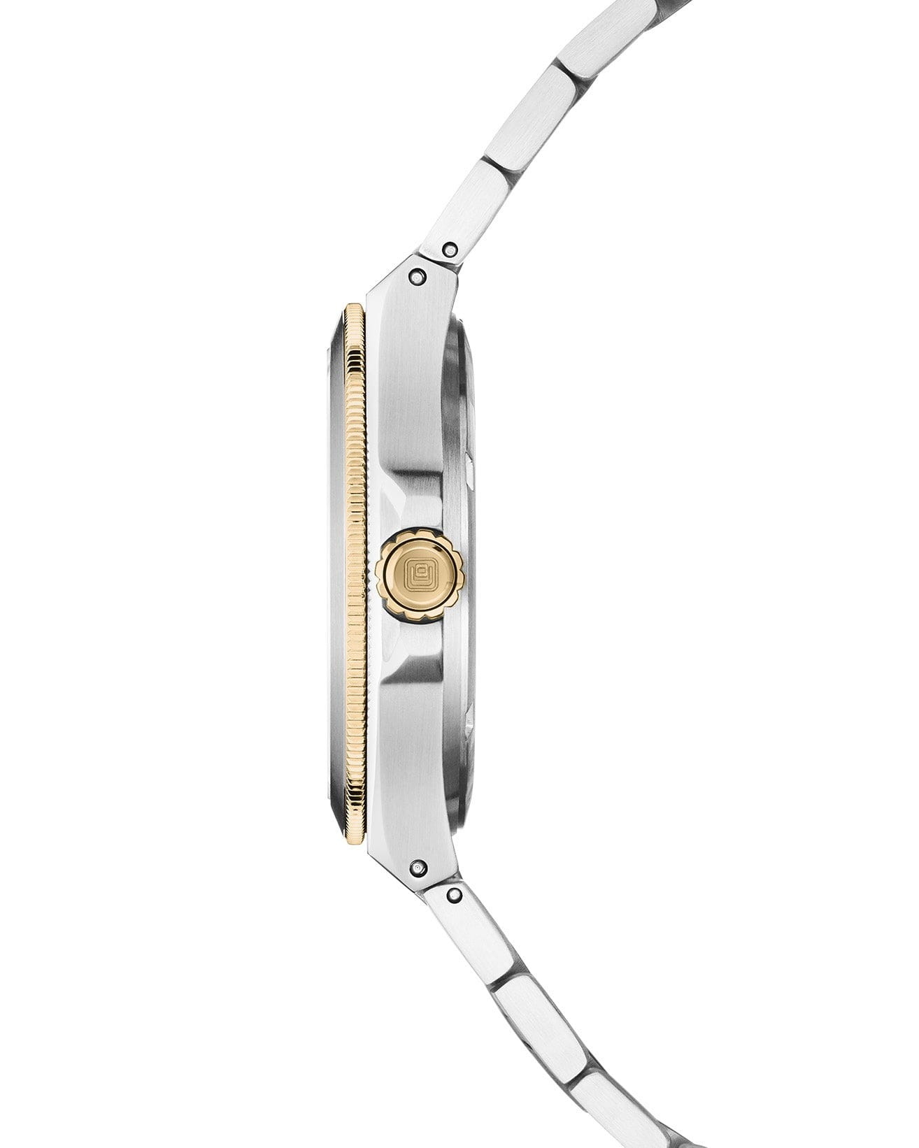 Часы Cover Iconosteel Lady CO223.05 воплощают в себе вечную элегантность благодаря своему чистому и утонченному дизайну. Эти швейцарские часы изготовлен из полированной нержавеющей стали, включая корпус и браслет. Они выделяются светящимся золотистым циферблатом выполненным по технике Sunray, обрамленным характерной формой Iconosteel с круглым корпусом и рифлёным безелемБезельВнешний ободок, закрепляющий стекло. В спортивных часах так называется поворотное кольцо с делениями на циферблате, выполняет роль таймера – замеряет отрезки времени на шкале. Неподвижный безель – элемент декора. Однонаправленно вращающийся безель на дайверских часах позволяет фиксировать моменты погружения и выныривания на поверхность. с частичным золотистым PVD-покрытиемPVDУльтратонкое покрытие наносится в технике вакуумного напыления, сочетает в себе нитрид титана особой прочности со слоем золота или оксида хрома. Несёт в себе декоративную или защитную функцию.. Часовые метки из кристаллов придают циферблату едва заметное сияние, а светящиеся стрелки благодаря люминесцентному покрытиюЛюминесцентное покрытиеПозволяет считывать показания времени в темноте. Производители наносят на стрелки, часовые индексы, безель или поверхность циферблата светонакопительный состав, дающий холодное свечение. обеспечивают отличную читаемость и практичность. Эти швейцарские женские часы, идеально подходящие как для делового стиля, так и для повседневного образа, воплощают в себе универсальность и утонченность. Оснащенные устойчивым к царапинам сапфировым стекломСапфировое стеклоПрочный и надёжный материал из кристалла сапфира синтетического происхождения, характеризующийся особой твёрдостью и устойчивостью к царапинам и повреждениям., швейцарским кварцевым механизмом и функцией отображения даты, эти часы соединяют надежность и элегантность. Завершает образ стальной браслет с раскладной застёжкойРаскладная застёжкаТакой тип застёжки используется только на браслетах из металла. Она никогда не раскрывается полностью, происходит разделение на 2 и более частей. Раскладывающая застёжка снизит вероятность потери часов к минимуму., который удобно сидит на запястье и обеспечивает надежную фиксацию. Часы обладают водозащитой уровня 100WR, что делает их подходящими для повседневного использования и активного образа жизни.