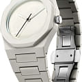 Часы D1 Milano Polycarbon PCBU08 – молодежные часы в стиле унисекс для повседневных образов, стильные и комфортные. Модель имеет белый корпус и браслет из поликарбоната с покрытием Софт-Тач.. Циферблат лаконичный с индексами в виде штрихов, защищен минеральным стекломМинеральное стеклоМинеральное стекло представляет собой искусственно выращенный минерал кварца. Такое стекло отличается особой устойчивостью к повреждениям и царапинам. Уступает по некоторым качествам сапфировому стеклу. с антибликовым покрытием. Стальная задняя крышка на 4 винтах. Пластиковый браслет на застёжке-бабочке с кнопкамиЗастёжка "бабочка"Такой вид застёжки дополняется предохранителями, помогающими избежать случайного раскрытия браслета. Обладают изящным исполнением. .