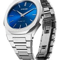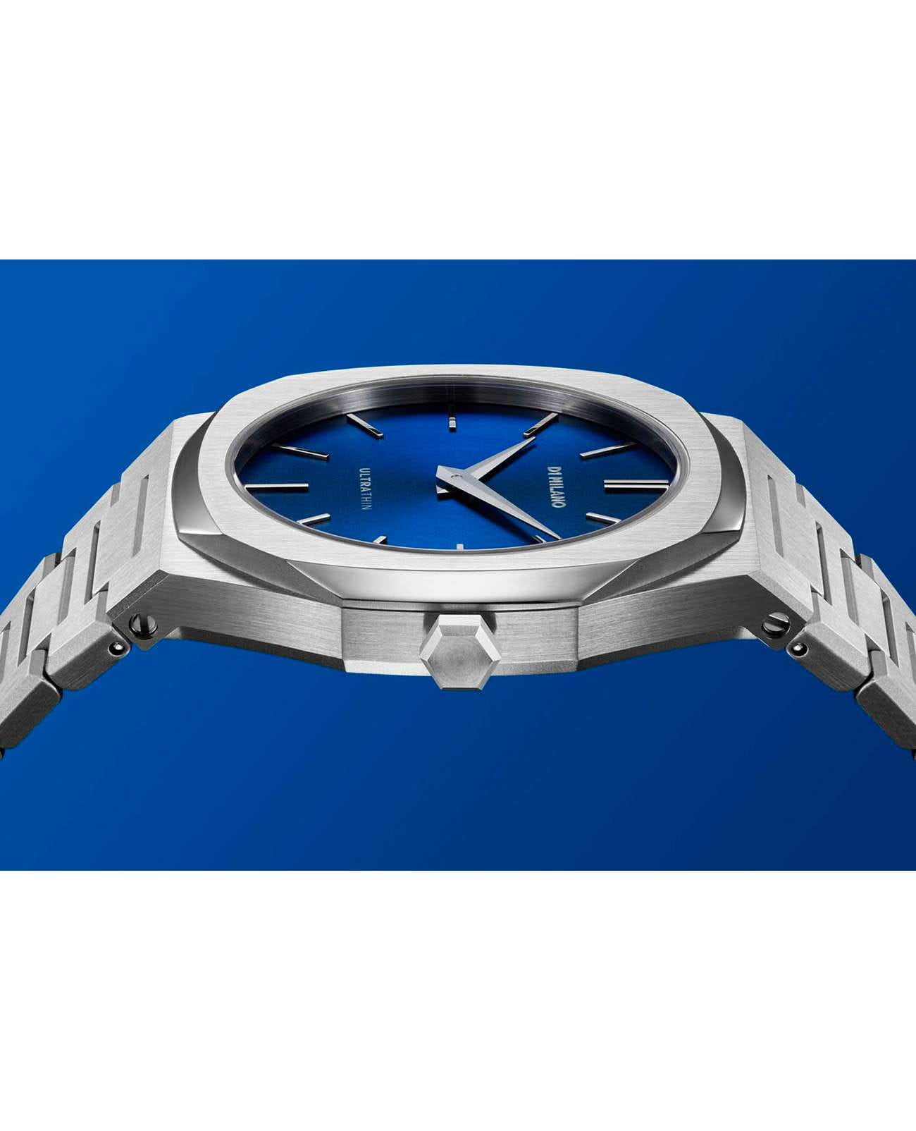 Наручные часы D1 Milano UTBL21 из коллекции Ultra Thin Mini Geo сочетают в себе элегантный дизайн и современные технологии. Модель обладает круглым корпусом диаметром 34 мм, изготовленным из нержавеющей стали, что обеспечивает высокую устойчивость к внешним воздействиям. Для защиты циферблата используется сапфировое стеклоСапфировое стеклоПрочный и надёжный материал из кристалла сапфира синтетического происхождения, характеризующийся особой твёрдостью и устойчивостью к царапинам и повреждениям., которое эффективно противостоит царапинам и механическим повреждениям. Часы оснащены кварцевым механизмом Miyota 1L22, гарантирующим точное время без необходимости подзаводки. Водонепроницаемость модели достигает 5 атмосфер (50 метров), что позволяет использовать их при контакте с водой, например, во время мытья рук или дождя. Браслет выполнен из нержавеющей стали с раскладной застежкойРаскладной замокДанный вариант застежки используется только на часах с металлическим браслетом. Отличительная особенность такого крепления в том, что длина браслета становится универсальной и вы можете самостоятельно отрегулировать нужный вам размер – застежка просто двигается по браслету часов., обеспечивающей комфортное ношение и безопасность. Циферблат синего цвета с метками в виде штрихов, что придает часам особую изысканность и делает их идеальным выбором для повседневного использования или особых случаев.
