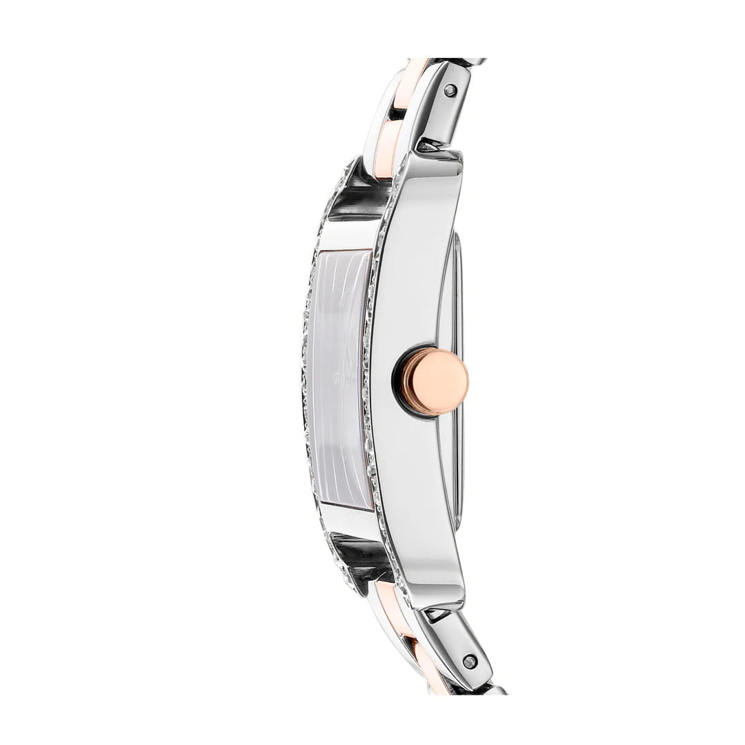 DKNY City Glitz DK1L003M0055 — женские кварцевые часы, сочетающие городской шик и нотки гламура. Корпус из нержавеющей стали 35 мм и минеральное стеклоМинеральное стеклоМинеральное стекло представляет собой искусственно выращенный минерал кварца. Такое стекло отличается особой устойчивостью к повреждениям и царапинам. Уступает по некоторым качествам сапфировому стеклу. обеспечивает защиту от царапин, а водонепроницаемость до 30 метров делает модель практичной для активного отдыха или повседневной носки. Стальной браслет с IP-покрытиемIP-покрытиеМетод ионного напыления. Демонстрирует повышенную устойчивость к истиранию, окислению и химическим веществам. Под воздействием высокого давления и температуры около 1500°C молекулы металла надёжно соединяются с частицами корпуса часов. на раскладной застёжкеРаскладная застёжкаТакой тип застёжки используется только на браслетах из металла. Она никогда не раскрывается полностью, происходит разделение на 2 и более частей. Раскладывающая застёжка снизит вероятность потери часов к минимуму. гарантирует комфорт и надежность. БезельБезельВнешний ободок, закрепляющий стекло. В спортивных часах так называется поворотное кольцо с делениями на циферблате, выполняет роль таймера – замеряет отрезки времени на шкале. Неподвижный безель – элемент декора. Однонаправленно вращающийся безель на дайверских часах позволяет фиксировать моменты погружения и выныривания на поверхность. инкрустирован кристаллами. Идеальный аксессуар для тех, кто ценит смелый урбанистический стиль с акцентами роскоши, подчеркивающий индивидуальность в будни и праздники.