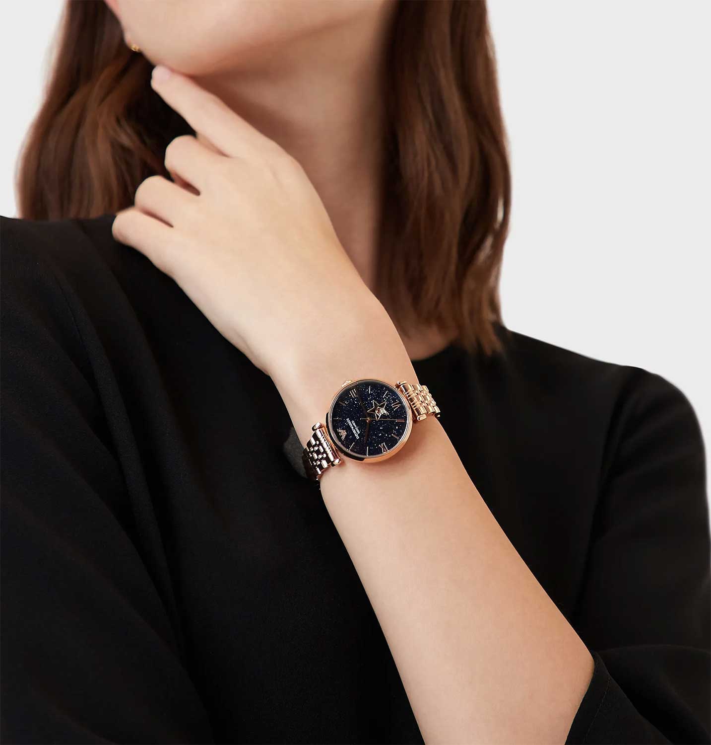 Женские итальянские часы Emporio Armani Gianni T-Bar AR60043, кварцевый механизм с высокой точностью. Класс водозащиты: 50 метров, позволит защитить корпус от случайных брызг или капель дождя. Корпус часов изготовлен из стали, розового цвета.