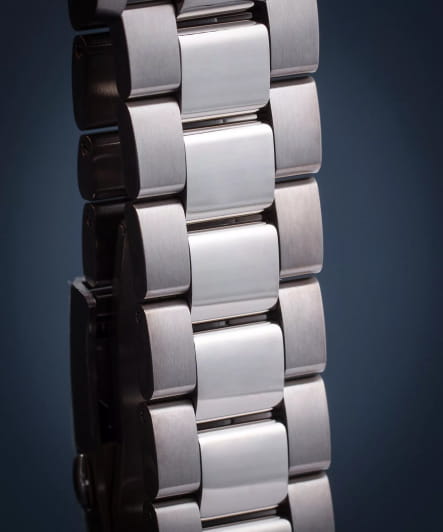 Мужские механические часы с автоподзаводом Epos из коллекции Sportive — это профессиональный дайверский инструмент с швейцарским качеством. Корпус диаметром 41,5 мм и толщиной 13,3 мм выполнен из титана, что обеспечивает лёгкость и высокую прочность. Циферблат чёрного цвета оформлен арабскими цифрами и метками. Циферблат защищён сапфировым стекломСапфировое стеклоПрочный и надёжный материал из кристалла сапфира синтетического происхождения, характеризующийся особой твёрдостью и устойчивостью к царапинам и повреждениям.. Стрелки и метки с люминесцентным покрытиемЛюминесцентное покрытиеПозволяет считывать показания времени в темноте. Производители наносят на стрелки, часовые индексы, безель или поверхность циферблата светонакопительный состав, дающий холодное свечение., обеспечивающим отличную читаемость в темноте. Механизм — швейцарский калибр Sellita SW200 с запасом хода 38 часов. Окошко даты с увеличительным стеклом расположено в положении 3 часов. БезельБезельВнешний ободок, закрепляющий стекло. В спортивных часах так называется поворотное кольцо с делениями на циферблате, выполняет роль таймера – замеряет отрезки времени на шкале. Неподвижный безель – элемент декора. Однонаправленно вращающийся безель на дайверских часах позволяет фиксировать моменты погружения и выныривания на поверхность. — однонаправленный вращающийся. Завинчивающаяся коронка и автоматический гелиевый клапан позволяют использовать часы при глубоководных погружениях. Часы оснащены титановым браслетом с раскладной застёжкойРаскладная застёжкаТакой тип застёжки используется только на браслетах из металла. Она никогда не раскрывается полностью, происходит разделение на 2 и более частей. Раскладывающая застёжка снизит вероятность потери часов к минимуму.. Водонепроницаемость 500 м соответствует требованиям для профессионального дайвинга. Гарантия — 24 месяца. Идеальный выбор для тех, кто ценит надёжность, точность и экстремальные испытания.