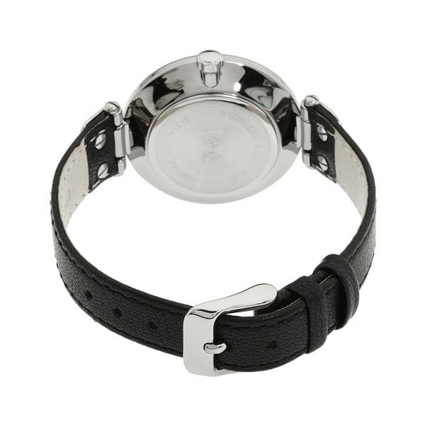 Стильные женские наручные часы с индикацией даты. Стальной корпус на кожаном ремешке. Гильошированный циферблат с аппликацией часовых меток и римских цифр.