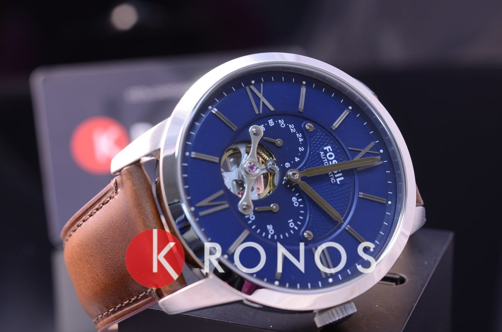 Наручные часы от популярного американского бренда Fossil - они будут замечательно смотреться как с повседневным стилем одежды, так и костюмом; браслет: кожа; корпус: сталь; цвет браслета: темно-коричневый; цвет корпуса: серебро; цвет циферблата: синий; ширина браслета: 22MM; водонепроницаемость: 5 ATM; диаметр корпуса: 44MM