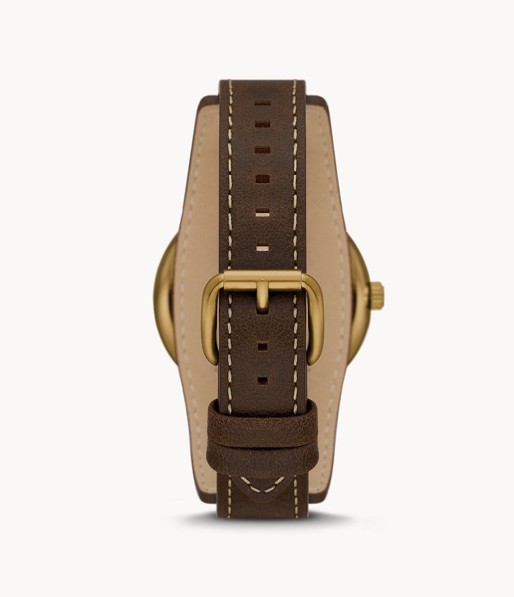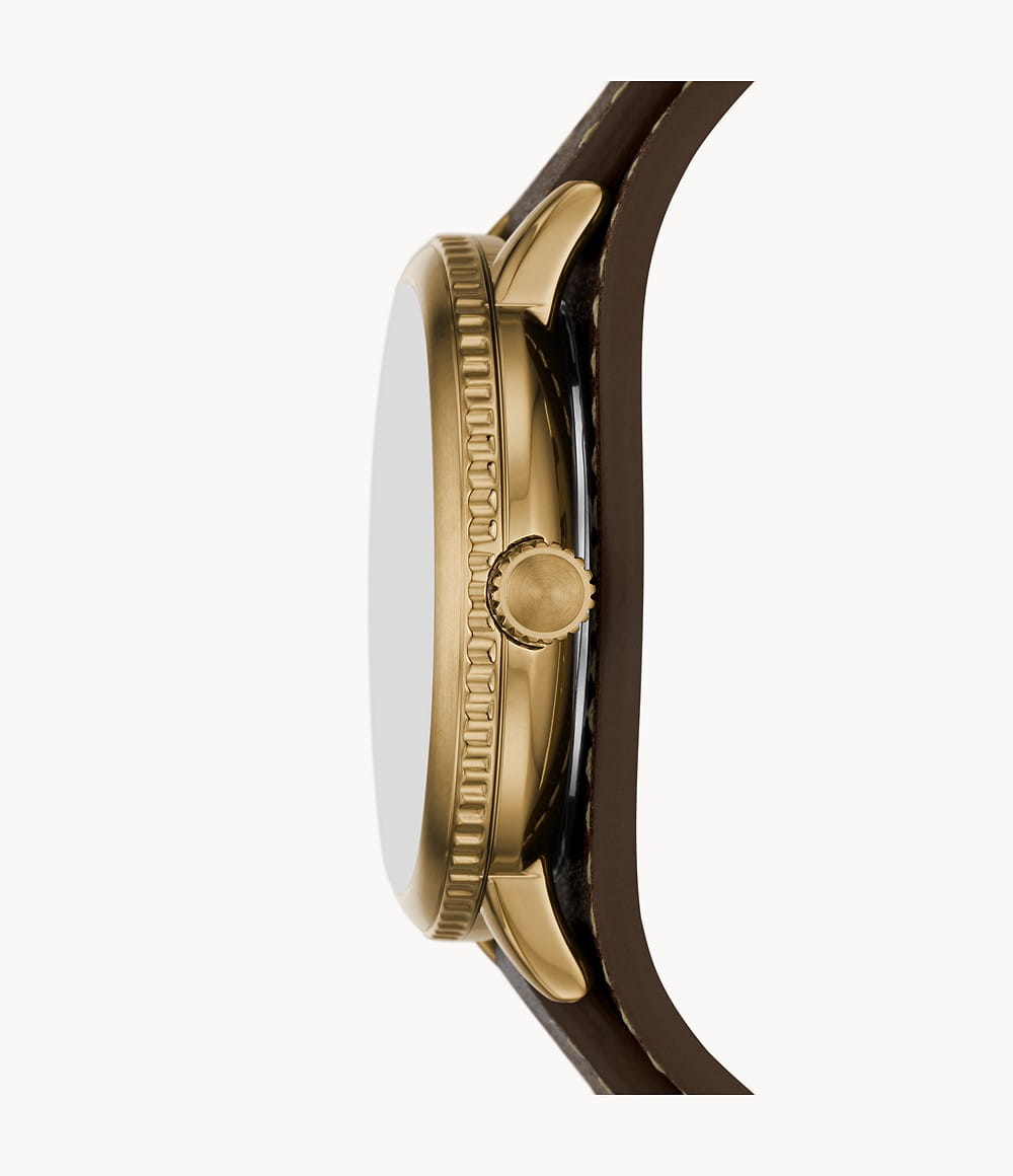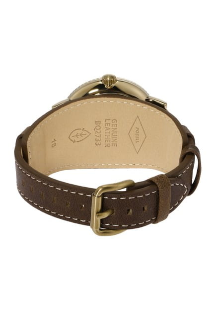 Мужские наручные часы с минеральным стекломМинеральное стеклоМинеральное стекло представляет собой искусственно выращенный минерал кварца. Такое стекло отличается особой устойчивостью к повреждениям и царапинам. Уступает по некоторым качествам сапфировому стеклу. Fossil Airlift BQ2733, кварцевый механизм с высокой точностью. Класс водозащиты: 50 метров, позволит защитить корпус от случайных брызг или капель дождя. Корпус часов изготовлен из стали с IP-покрытиемIP-покрытиеМетод ионного напыления. Демонстрирует повышенную устойчивость к истиранию, окислению и химическим веществам. Под воздействием высокого давления и температуры около 1500°C молекулы металла надёжно соединяются с частицами корпуса часов.. БезельБезельВнешний ободок, закрепляющий стекло. В спортивных часах так называется поворотное кольцо с делениями на циферблате, выполняет роль таймера – замеряет отрезки времени на шкале. Неподвижный безель – элемент декора. Однонаправленно вращающийся безель на дайверских часах позволяет фиксировать моменты погружения и выныривания на поверхность. с IP-покрытиемIP-покрытиеМетод ионного напыления. Демонстрирует повышенную устойчивость к истиранию, окислению и химическим веществам. Под воздействием высокого давления и температуры около 1500°C молекулы металла надёжно соединяются с частицами корпуса часов.. Кожаный ремешок на стандартной застёжке.
