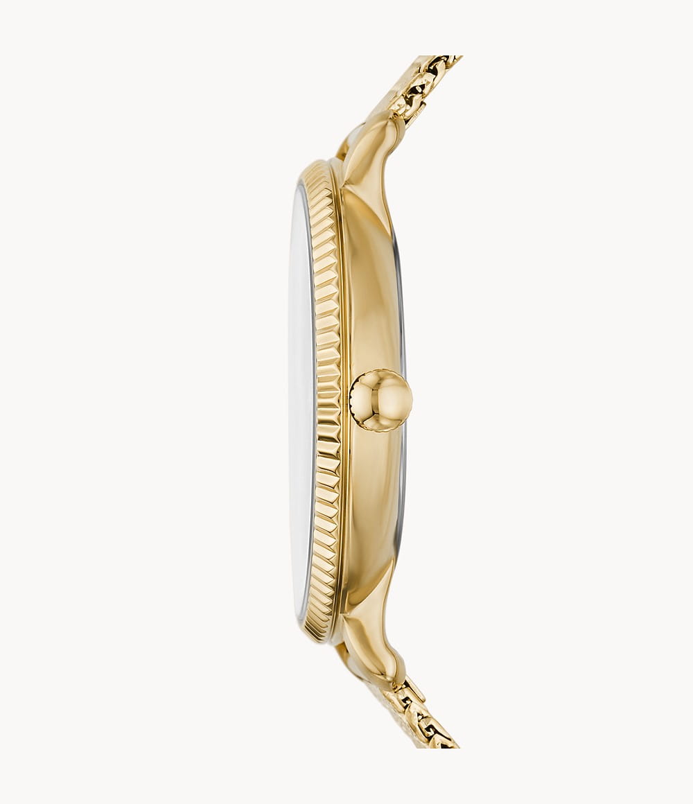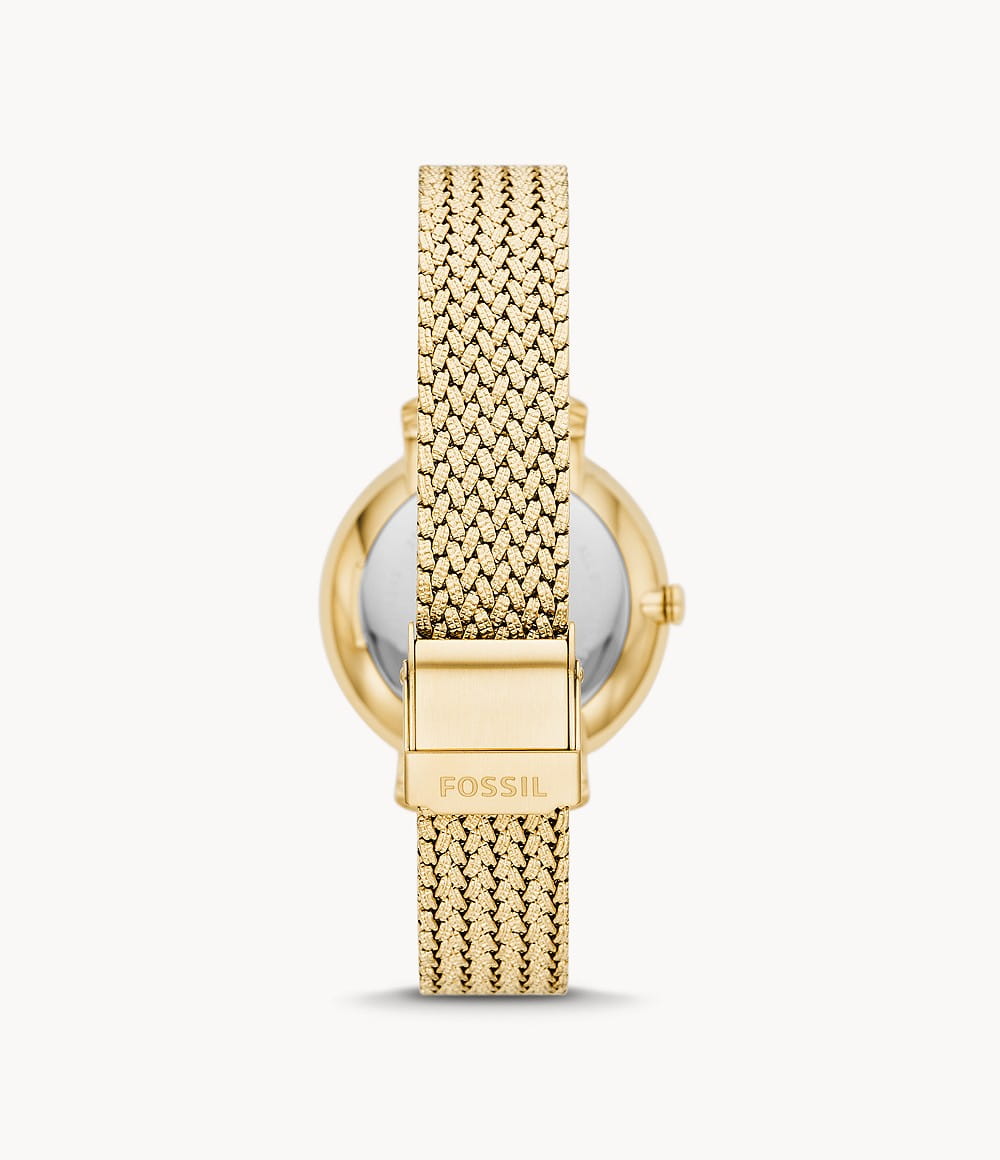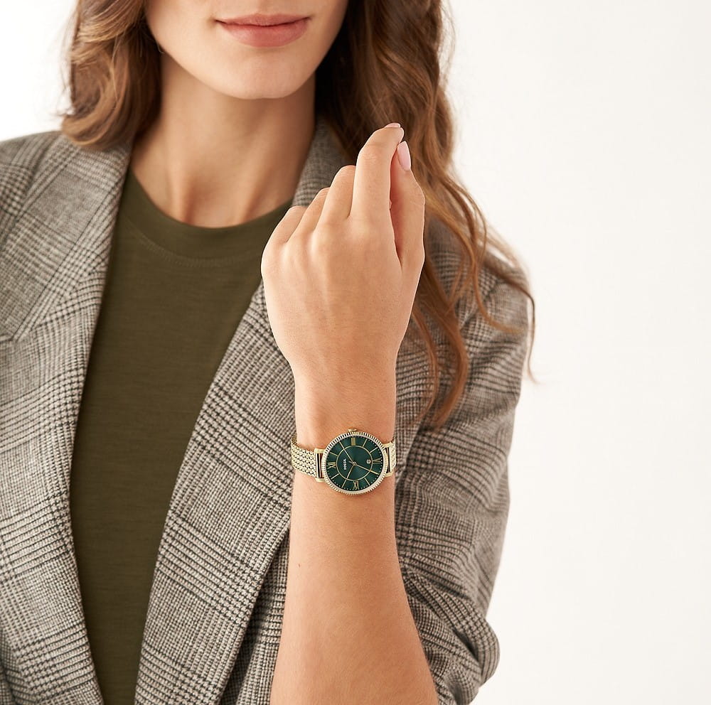 Американские женские наручные часы Fossil Jacqueline ES5242. Кварцевый механизм с высокой точностью. Класс водозащиты: 30 метров, позволит защитить корпус от случайных брызг или капель дождя. Корпус часов изготовлен из стали с IP-покрытиемIP-покрытиеМетод ионного напыления. Демонстрирует повышенную устойчивость к истиранию, окислению и химическим веществам. Под воздействием высокого давления и температуры около 1500°C молекулы металла надёжно соединяются с частицами корпуса часов.. Стальной браслет с раскладной застёжкойРаскладная застёжкаТакой тип застёжки используется только на браслетах из металла. Она никогда не раскрывается полностью, происходит разделение на 2 и более частей. Раскладывающая застёжка снизит вероятность потери часов к минимуму.. Окошко даты находится в положении 6 часов.