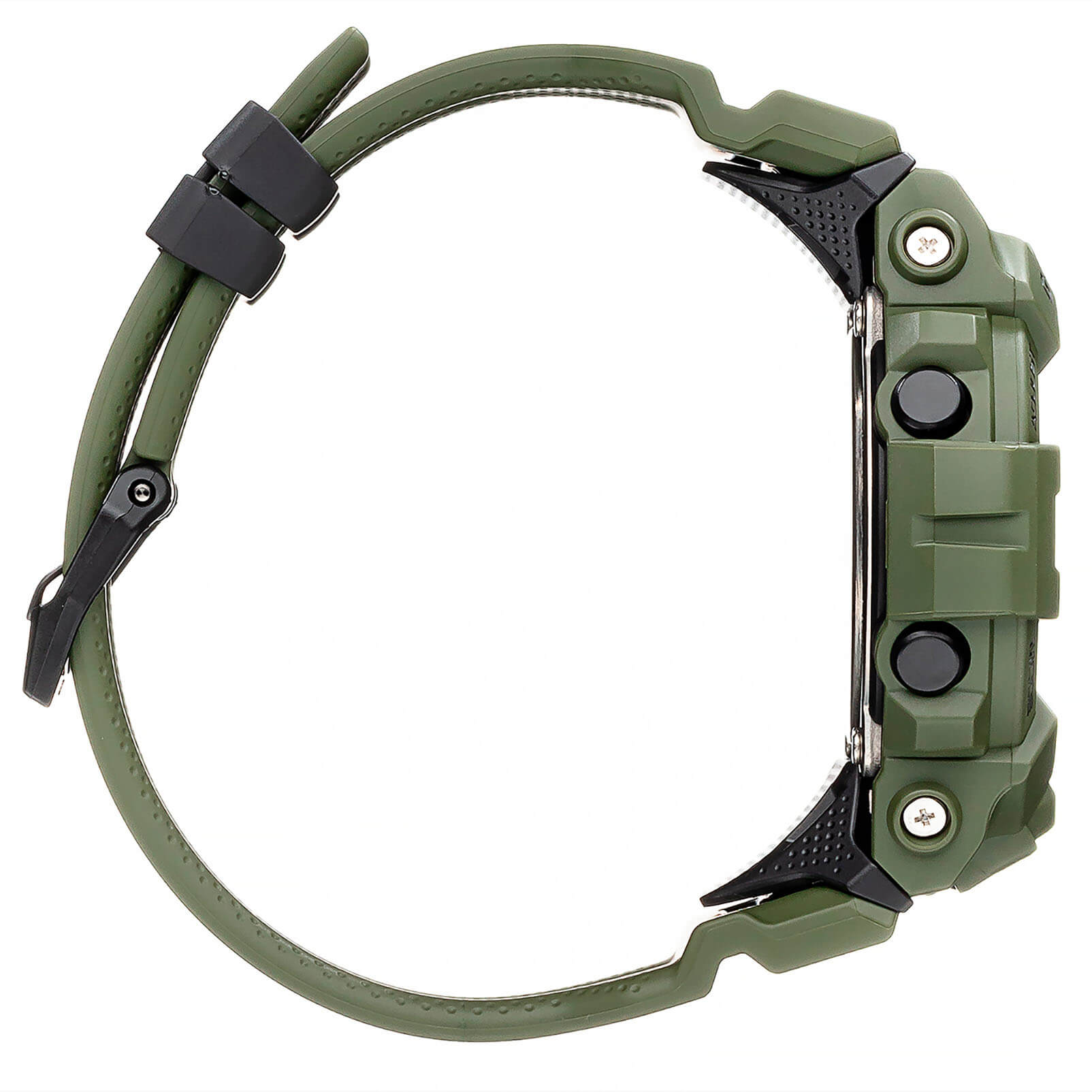 Это не просто стильный и практичный аксессуар, модель цвета хаки является идеальным помощником в правильной организации тренировок. Часы для фитнеса и бега оснащены шагомером, измеряющим их в количестве от 0 до 999999, многофункциональным таймером, секундомером с памятью на 200 результатов. С помощью технологии BluetoothBluetoothСовременная технология, позволяющая синхронизировать часы с телефоном и переносить данные. Часы с Bluetooth расширяют возможности вашего смартфона и делают его использование ещё более удобным. данные о физической активности могут передаваться и анализироваться в вашем смартфоне, для этого было разработано приложение G-Shock Connected Phone. Кварцевый механизм японского производства. Батарейка рассчитана на 3 года работы. Ударопрочный корпусУдаропрочный корпусМеханизм заключён в корпус, выполненный из современных материалов, устойчивых к ударам, механическим повреждениям и падению с высоты: инновационный пластик, карбон, нержавеющая сталь, титан. из полимерного материала. Минеральное стекло. Водостойкость до 20 бар. Циферблат со светодиодной подсветкойСветодиодная подсветкаСветодиодная или LED-подсветка обеспечивает появление яркого холодного свечения за счёт LED-элементов - маленьких лампочек. Они потребляют минимальное количество энергии, чаще всего можно встретить 1 светодиод, в нижней части циферблата., стрелки с люминесцентным покрытиемЛюминесцентное покрытиеПозволяет считывать показания времени в темноте. Производители наносят на стрелки, часовые индексы, безель или поверхность циферблата светонакопительный состав, дающий холодное свечение.. Будильник, мировое времяМировое время Полезное часовое усложнение, отображающее время в основных городах и известных областях по всему миру, оно связано с часовыми поясами, удобно для путешественников и бизнесменов. , календарь до 2099 года, функция поиска телефона, хронографХронографФункция позволяет измерять отрезки времени с особой точностью: часы, минуты, секунды. Верным признаком хронографа является наличие на циферблате 3 дополнительных окошек-счётчиков.. Габариты: 54,1 x 48,6 x 15,5 мм.