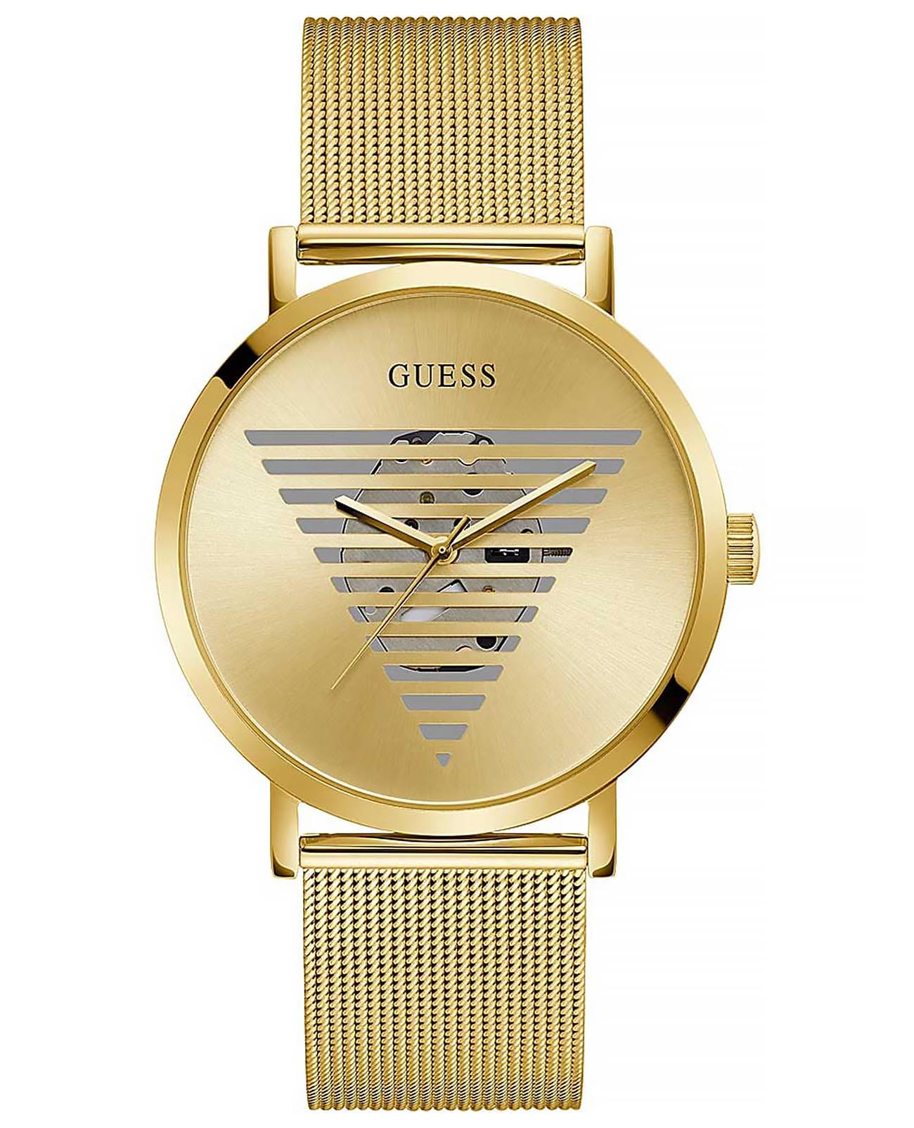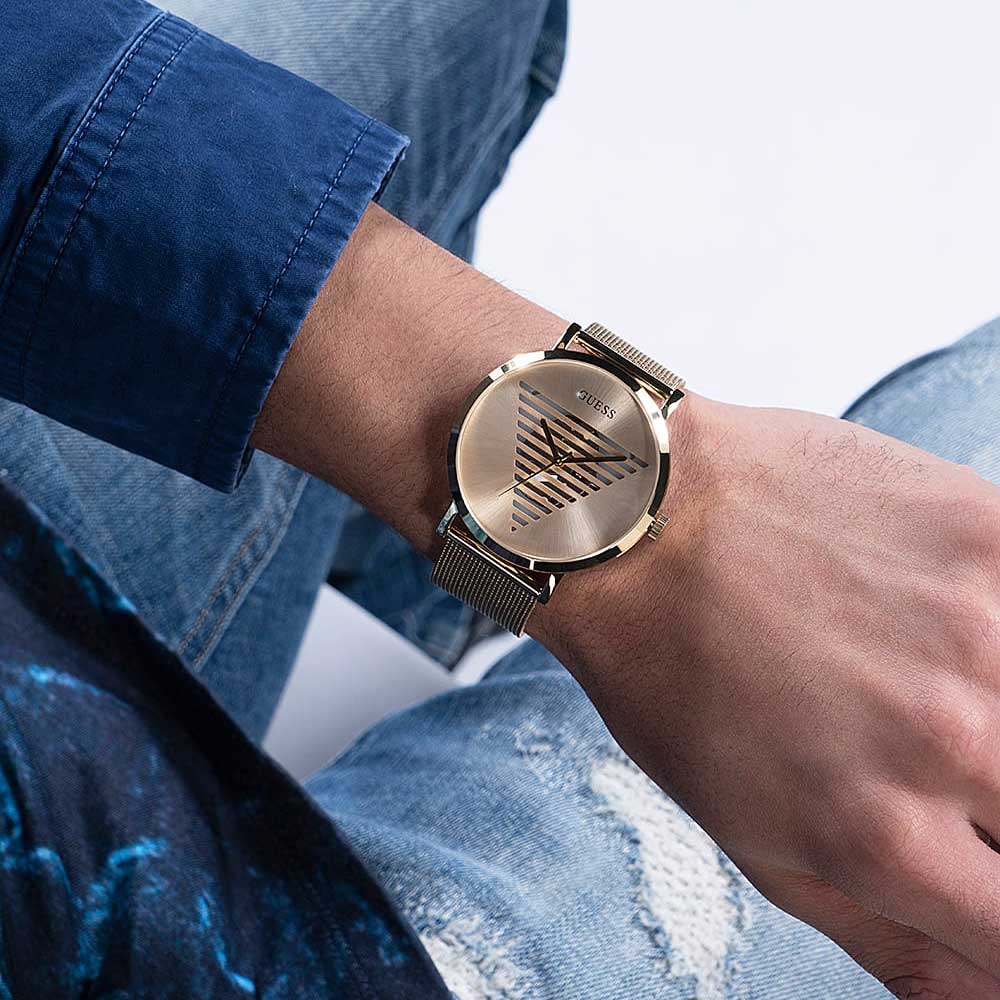 Мужские наручные часы Guess Trend GW0502G1 с минеральным стекломМинеральное стеклоМинеральное стекло представляет собой искусственно выращенный минерал кварца. Такое стекло отличается особой устойчивостью к повреждениям и царапинам. Уступает по некоторым качествам сапфировому стеклу., кварцевый механизм с высокой точностью. Класс водозащиты: 30 метров, позволит защитить корпус от случайных брызг или капель дождя. Корпус часов изготовлен из стали с IP-покрытиемIP-покрытиеМетод ионного напыления. Демонстрирует повышенную устойчивость к истиранию, окислению и химическим веществам. Под воздействием высокого давления и температуры около 1500°C молекулы металла надёжно соединяются с частицами корпуса часов.. Браслет на миланском плетении с IP-покрытиемIP-покрытиеМетод ионного напыления. Демонстрирует повышенную устойчивость к истиранию, окислению и химическим веществам. Под воздействием высокого давления и температуры около 1500°C молекулы металла надёжно соединяются с частицами корпуса часов. и с раскладной застёжкойРаскладная застёжкаТакой тип застёжки используется только на браслетах из металла. Она никогда не раскрывается полностью, происходит разделение на 2 и более частей. Раскладывающая застёжка снизит вероятность потери часов к минимуму..