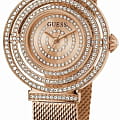 Женские наручные часы Guess GW0550L3 с минеральным стекломМинеральное стеклоМинеральное стекло представляет собой искусственно выращенный минерал кварца. Такое стекло отличается особой устойчивостью к повреждениям и царапинам. Уступает по некоторым качествам сапфировому стеклу., кварцевый механизм с высокой точностью. Класс водозащиты: 30 метров, позволит защитить корпус от случайных брызг или капель дождя. Корпус часов изготовлен из стали с IP-покрытиемIP-покрытиеМетод ионного напыления. Демонстрирует повышенную устойчивость к истиранию, окислению и химическим веществам. Под воздействием высокого давления и температуры около 1500°C молекулы металла надёжно соединяются с частицами корпуса часов.. Браслет с раскладной застёжкойРаскладная застёжкаТакой тип застёжки используется только на браслетах из металла. Она никогда не раскрывается полностью, происходит разделение на 2 и более частей. Раскладывающая застёжка снизит вероятность потери часов к минимуму. с IP-покрытиемIP-покрытиеМетод ионного напыления. Демонстрирует повышенную устойчивость к истиранию, окислению и химическим веществам. Под воздействием высокого давления и температуры около 1500°C молекулы металла надёжно соединяются с частицами корпуса часов.. Корпус и циферблат украшены кристаллами. Круглый стальной корпус, украшенный кристаллами. Циферблат выполнен по технологии Sunray (солнечные лучи). Браслет миланского плетения.