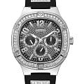 Мужские наручные часы с минеральным стекломМинеральное стеклоМинеральное стекло представляет собой искусственно выращенный минерал кварца. Такое стекло отличается особой устойчивостью к повреждениям и царапинам. Уступает по некоторым качествам сапфировому стеклу. Guess Duke GW0641G1, кварцевый механизм с высокой точностью. Класс водозащиты: 50 метров, позволит защитить корпус от случайных брызг или капель дождя. Корпус часов изготовлен из стали. Стрелки с люминесцентным покрытиемЛюминесцентное покрытиеПозволяет считывать показания времени в темноте. Производители наносят на стрелки, часовые индексы, безель или поверхность циферблата светонакопительный состав, дающий холодное свечение.. Силиконовый ремешок на стандартной застёжке. БезельБезельВнешний ободок, закрепляющий стекло. В спортивных часах так называется поворотное кольцо с делениями на циферблате, выполняет роль таймера – замеряет отрезки времени на шкале. Неподвижный безель – элемент декора. Однонаправленно вращающийся безель на дайверских часах позволяет фиксировать моменты погружения и выныривания на поверхность.