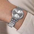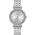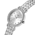Женские наручные часы Guess GW0763L1с минеральным стекломМинеральное стеклоМинеральное стекло представляет собой искусственно выращенный минерал кварца. Такое стекло отличается особой устойчивостью к повреждениям и царапинам. Уступает по некоторым качествам сапфировому стеклу., кварцевый механизм с высокой точностью. Корпус часов изготовлен из стали. БезельБезельВнешний ободок, закрепляющий стекло. В спортивных часах так называется поворотное кольцо с делениями на циферблате, выполняет роль таймера – замеряет отрезки времени на шкале. Неподвижный безель – элемент декора. Однонаправленно вращающийся безель на дайверских часах позволяет фиксировать моменты погружения и выныривания на поверхность. и циферблат украшены кристаллами. Класс водозащиты: 30 метров, позволит защитить корпус от случайных брызг или капель дождя. Стальной браслет на раскладной застёжкеРаскладная застёжкаТакой тип застёжки используется только на браслетах из металла. Она никогда не раскрывается полностью, происходит разделение на 2 и более частей. Раскладывающая застёжка снизит вероятность потери часов к минимуму..