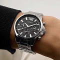 Стильные и функциональные часы Guess GW0900G1 оснащены кварцевым механизмом, что обеспечивает точность и надежность в использовании. Корпус выполнен из прочной стали с полированной поверхностью, придающей изделиям утонченный и современный вид. Черный циферблат украшен метками в виде штрихов и римской цифрой XII, обеспечивающими легкое считывание времени. Время отображается в двух форматах — 12-ти и 24-х часовом, что удобно для тех, кто привык к разным системам времени. Дополнительные циферблаты показывают дату и день недели, что позволяет всегда быть в курсе текущей даты без необходимости использования других устройств. Часы также оснащены тахиметромТахиметрРазмеченная шкала, располагается на ободке или безеле часов. Тахиметр позволяет рассчитать скорость на определённом участке пути, расстояние измеряется в километрах или милях., что добавляет им функциональности и может быть полезно для измерения скорости. Люминесцентное покрытиеЛюминесцентное покрытиеПозволяет считывать показания времени в темноте. Производители наносят на стрелки, часовые индексы, безель или поверхность циферблата светонакопительный состав, дающий холодное свечение. на стрелках и метках обеспечивает отличную видимость в темноте. Минеральное стеклоМинеральное стеклоМинеральное стекло представляет собой искусственно выращенный минерал кварца. Такое стекло отличается особой устойчивостью к повреждениям и царапинам. Уступает по некоторым качествам сапфировому стеклу. защищает циферблат от царапин и повреждений, а водозащита 50WR позволяет не волноваться о случайных контактах с водой, например, во время дождя. Браслет из стали оснащен раскладной застежкойРаскладная застёжкаТакой тип застёжки используется только на браслетах из металла. Она никогда не раскрывается полностью, происходит разделение на 2 и более частей. Раскладывающая застёжка снизит вероятность потери часов к минимуму., обеспечивающей надежную фиксацию часов на руке и комфорт в ношении. Рифленая заводная головка с защитой добавляет изысканности и одновременно защищает механизм от повреждений. Эти часы идеально подойдут для тех, кто ценит стиль, функциональность и качество в одном аксессуаре.