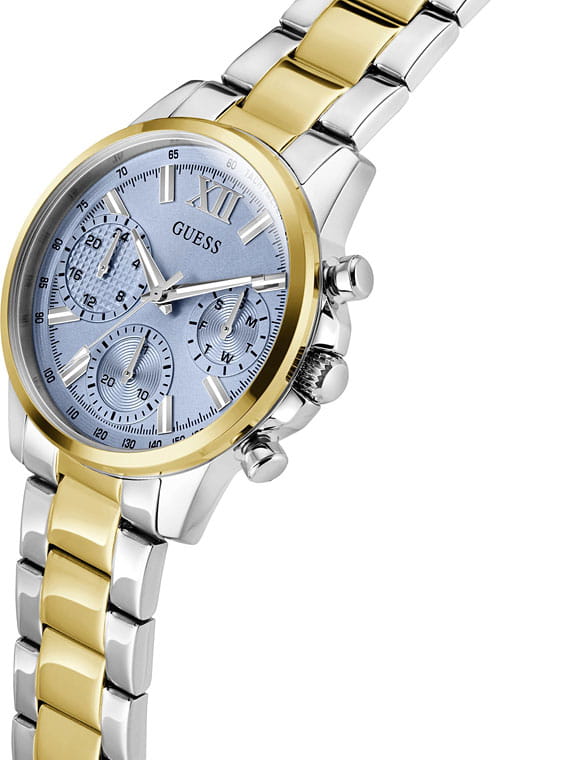 Элегантные женские наручные часы Guess GW0933L3 сочетают в себе стиль и функциональность. Эти часы оснащены точным кварцевым механизмом, что гарантирует надежность и долговечность. Корпус часов выполнен из прочной нержавеющей стали серебристого цвета, диаметром 36 мм. Неподвижный безельБезельВнешний ободок, закрепляющий стекло. В спортивных часах так называется поворотное кольцо с делениями на циферблате, выполняет роль таймера – замеряет отрезки времени на шкале. Неподвижный безель – элемент декора. Однонаправленно вращающийся безель на дайверских часах позволяет фиксировать моменты погружения и выныривания на поверхность. с PVD-покрытиемPVDУльтратонкое покрытие наносится в технике вакуумного напыления, сочетает в себе нитрид титана особой прочности со слоем золота или оксида хрома. Несёт в себе декоративную или защитную функцию. золотистого цвета придает роскошный вид. Циферблат Циферблат Циферблат дополнен тахиметромТахиметрРазмеченная шкала, располагается на ободке или безеле часов. Тахиметр позволяет рассчитать скорость на определённом участке пути, расстояние измеряется в километрах или милях.. Часы оснащены стальным браслетом с частичным PVD-покрытиемPVDУльтратонкое покрытие наносится в технике вакуумного напыления, сочетает в себе нитрид титана особой прочности со слоем золота или оксида хрома. Несёт в себе декоративную или защитную функцию. на раскладной застёжкеРаскладная застёжкаТакой тип застёжки используется только на браслетах из металла. Она никогда не раскрывается полностью, происходит разделение на 2 и более частей. Раскладывающая застёжка снизит вероятность потери часов к минимуму., которая обеспечивает комфортное прилегание к запястью и надежную фиксацию. Минеральное стеклоМинеральное стеклоМинеральное стекло представляет собой искусственно выращенный минерал кварца. Такое стекло отличается особой устойчивостью к повреждениям и царапинам. Уступает по некоторым качествам сапфировому стеклу. защищает циферблат от царапин и повреждений, сохраняя его безупречный вид. 12-ти и 24-х часовой формат. Рифленая заводная головка с защитой. Водозащита 30WR гарантирует защиту от случайных брызг и дождя, что делает эти часы практичным аксессуаром для повседневной жизни. Люминесцентное покрытиеЛюминесцентное покрытиеПозволяет считывать показания времени в темноте. Производители наносят на стрелки, часовые индексы, безель или поверхность циферблата светонакопительный состав, дающий холодное свечение. на стрелках и метках обеспечивает отличную видимость в темноте. Guess – это не просто аксессуар, это заявление о вашем безупречном вкусе и стремлении к совершенству.