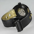 Механизм с автоматическим подзаводом Сапфировое стеклоСапфировое стеклоПрочный и надёжный материал из кристалла сапфира синтетического происхождения, характеризующийся особой твёрдостью и устойчивостью к царапинам и повреждениям. устойчивое к появлению царапин, обладающее высокой прозрачностью. Класс водозащиты: 50 метров, позволит защитить корпус от случайных брызг или капель дождя. Корпус часов изготовлен из стали с PVD-покрытиемPVDУльтратонкое покрытие наносится в технике вакуумного напыления, сочетает в себе нитрид титана особой прочности со слоем золота или оксида хрома. Несёт в себе декоративную или защитную функцию.. Кожаный ремешок с раскладной застёжкойРаскладная застёжкаТакой тип застёжки используется только на браслетах из металла. Она никогда не раскрывается полностью, происходит разделение на 2 и более частей. Раскладывающая застёжка снизит вероятность потери часов к минимуму..