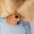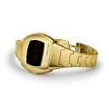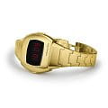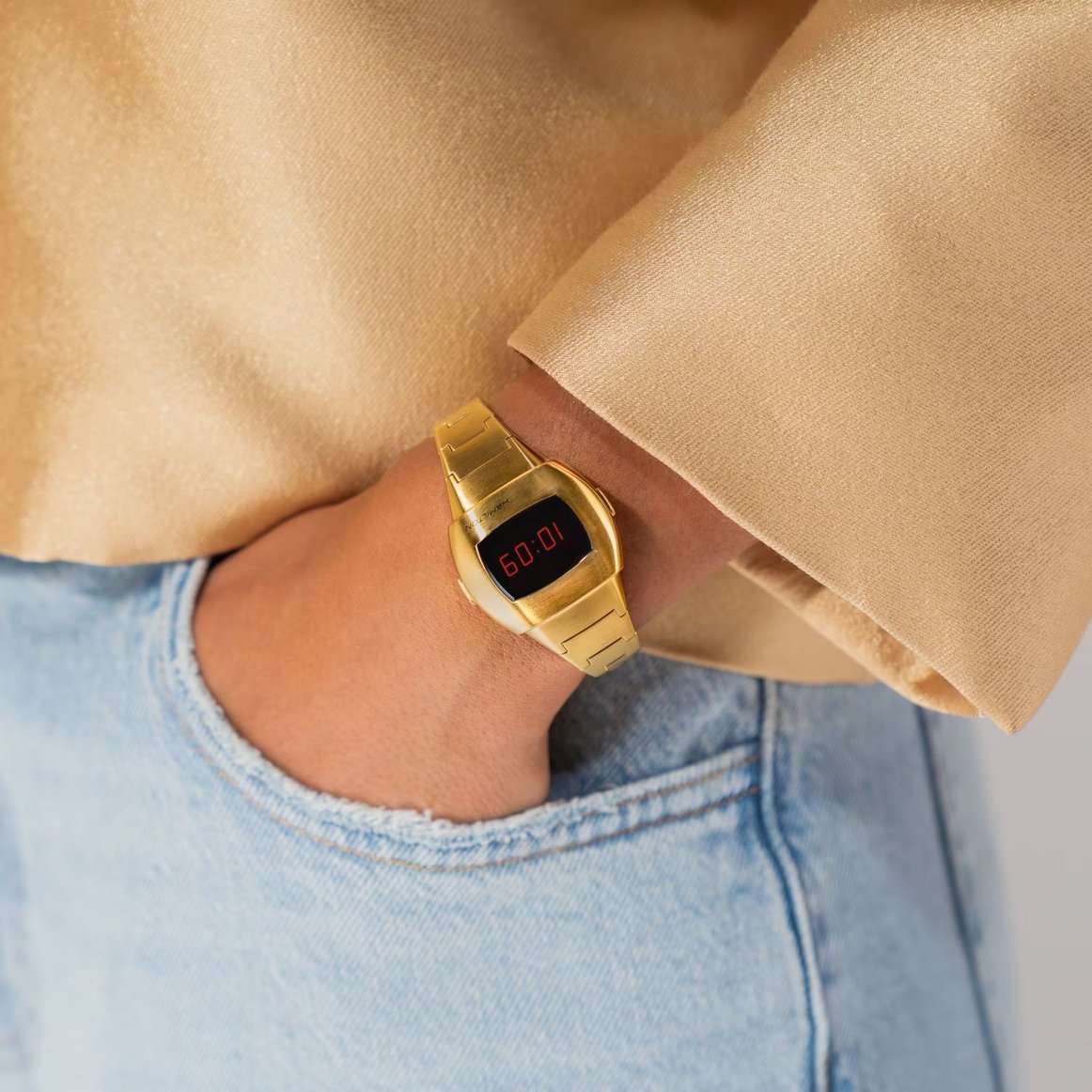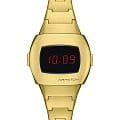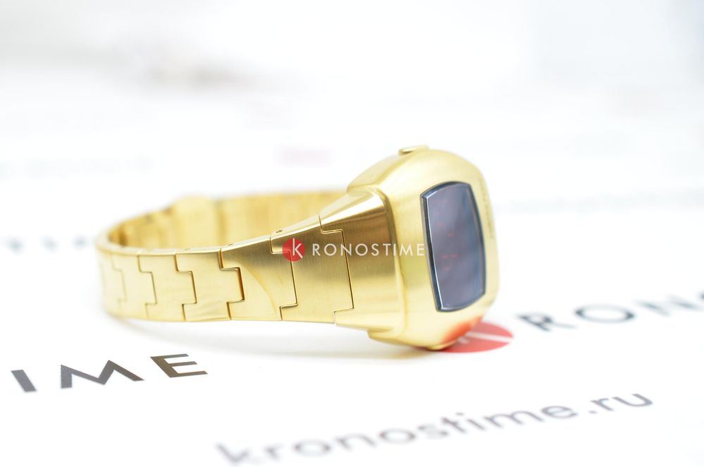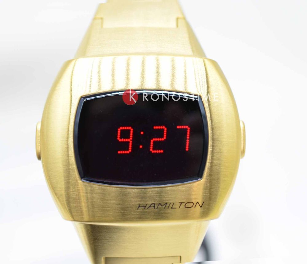 Hamilton PSR 74 H52314130 — стильная цифровая модель в ретрофутуристическом дизайне с акцентом на легендарное наследие Pulsar. Корпус размерами 26 × 31 мм выполнен из нержавеющей стали с PVD-покрытиемPVDУльтратонкое покрытие наносится в технике вакуумного напыления, сочетает в себе нитрид титана особой прочности со слоем золота или оксида хрома. Несёт в себе декоративную или защитную функцию. жёлтого золота, придающим часам винтажное звучание и элегантность. Гибридный дисплей сочетает постоянную LCD-индикацию и активируемую по нажатию LED-подсветку с характерными красными цифрами. Циферблат защищён сапфировым стекломСапфировое стеклоПрочный и надёжный материал из кристалла сапфира синтетического происхождения, характеризующийся особой твёрдостью и устойчивостью к царапинам и повреждениям. с антибликовым покрытиемАнтибликовое покрытиеСлой оксида металла в 0,13-0,3 микрон, благодаря которому стекло часов не бликует и не отражает свет. Антибликовое покрытие уменьшает отражение света в 10 раз, обеспечивая отличную читаемость показателей циферблата.. Внутри установлен точный кварцевый механизм с четырёхлетним сроком службы батареи. Формат времени можно выбрать — 12 или 24 часа, также отображается дата. Браслет выполнен из стали с PVD-покрытиемPVDУльтратонкое покрытие наносится в технике вакуумного напыления, сочетает в себе нитрид титана особой прочности со слоем золота или оксида хрома. Несёт в себе декоративную или защитную функцию. в тон корпуса, а застёжка 'бабочка'Застёжка "бабочка"Такой вид застёжки дополняется предохранителями, помогающими избежать случайного раскрытия браслета. Обладают изящным исполнением. обеспечивает комфортную посадку и надёжную фиксацию. Водонепроницаемость 100 метров делает модель подходящей для активного повседневного использования. Hamilton PSR 74 — культовая классика с цифровой душой.