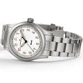 Hamilton Khaki Field Quartz H69401110 — компактные и универсальные часы в классическом военном стиле, с акцентом на надёжность и практичность. Корпус диаметром 38 мм выполнен из нержавеющей стали с сатинированной поверхностью. Он лёгкий, удобный и идеально подходит для запястий любого размера. Циферблат защищён сапфировым стекломСапфировое стеклоПрочный и надёжный материал из кристалла сапфира синтетического происхождения, характеризующийся особой твёрдостью и устойчивостью к царапинам и повреждениям. с антибликовым покрытиемАнтибликовое покрытиеСлой оксида металла в 0,13-0,3 микрон, благодаря которому стекло часов не бликует и не отражает свет. Антибликовое покрытие уменьшает отражение света в 10 раз, обеспечивая отличную читаемость показателей циферблата., устойчивым к царапинам и бликам. Циферблат оформлен в классическом армейском стиле: крупные арабские цифры, 24-часовая шкала по внутреннему кругу, стрелки и метки с люминесцентным покрытиемЛюминесцентное покрытиеПозволяет считывать показания времени в темноте. Производители наносят на стрелки, часовые индексы, безель или поверхность циферблата светонакопительный состав, дающий холодное свечение. для удобного считывания в темноте. Внутри установлен швейцарский кварцевый калибр ETA F05.105mh2 с функцией EOL-индикацииEOLПредставляет собой систему, уведомляющую владельца часов о необходимости замены элемента питания. За 2 недели до полного разряда батарейки секундная стрелка перестаёт ходить чётко и начинает перепрыгивать на 3-4 деления. — предупреждением о скором разряде батареи. Модель укомплектована браслетом из нержавеющей стали с раскладной застёжкойРаскладная застёжкаТакой тип застёжки используется только на браслетах из металла. Она никогда не раскрывается полностью, происходит разделение на 2 и более частей. Раскладывающая застёжка снизит вероятность потери часов к минимуму., обеспечивающей надёжную посадку. Водонепроницаемость 50 метров делает часы устойчивыми к брызгам и дождю, идеально подходящими для повседневного ношения. Khaki Field Quartz — надёжный выбор для тех, кто ценит простоту, точность и долговечность.