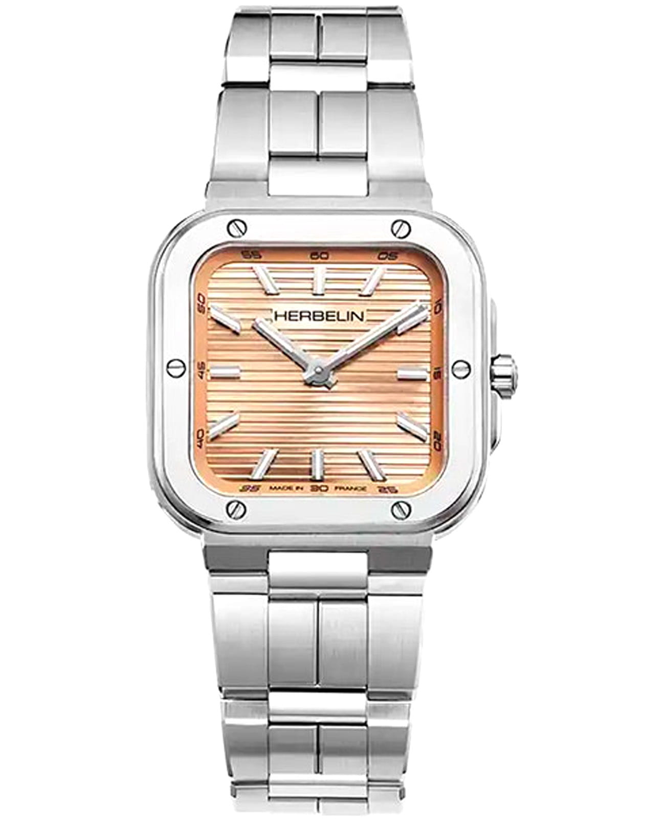 Женские кварцевые часы Herbelin Cap Camarat 17546B18 – отражающий идеальное сочетание современного дизайна, надёжности и функциональности. Элегантный облик станет превосходным завершением образа, наделив его индивидуальным характером. Корпус из нержавеющей стали серебристого цвета, размером 30 х 30 мм, идеально сбалансирован и элегантен. Сапфировое стеклоСапфировое стеклоПрочный и надёжный материал из кристалла сапфира синтетического происхождения, характеризующийся особой твёрдостью и устойчивостью к царапинам и повреждениям. защищает циферблат от царапин и устойчивое к механическим повреждениям. БезельБезельВнешний ободок, закрепляющий стекло. В спортивных часах так называется поворотное кольцо с делениями на циферблате, выполняет роль таймера – замеряет отрезки времени на шкале. Неподвижный безель – элемент декора. Однонаправленно вращающийся безель на дайверских часах позволяет фиксировать моменты погружения и выныривания на поверхность. украшен винтами, заводная головка с защитой. Стрелки и метки с люминесцентным покрытиемЛюминесцентное покрытиеПозволяет считывать показания времени в темноте. Производители наносят на стрелки, часовые индексы, безель или поверхность циферблата светонакопительный состав, дающий холодное свечение.. Стальной браслет на застёжке-бабочке с кнопкамиЗастёжка "бабочка"Такой вид застёжки дополняется предохранителями, помогающими избежать случайного раскрытия браслета. Обладают изящным исполнением. обеспечивает комфортное ношение. Водозащита 100 метров позволит плавать, нырять и заниматься другими водными видами спорта. Эта модель – отличный выбор для тех, кто ищет сочетание стиля, качества и функциональности. Часы станут не только полезным аксессуаром, но и выразительным элементом вашего имиджа.