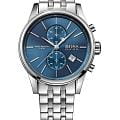 Мужские элегантные часы Hugo Boss Jet HB1513384 сочетают современный дизайн и функциональность в 41-мм корпусе из нержавеющей стали серебристого цвета. Модель оснащена кварцевым механизмом, обеспечивающим точность хода, и функциями хронографаХронографФункция позволяет измерять отрезки времени с особой точностью: часы, минуты, секунды. Верным признаком хронографа является наличие на циферблате 3 дополнительных окошек-счётчиков. с cекундомеромСекундомерСекундоме́р — прибор, способный измерять интервалы времени с точностью до долей секунды., а также c индикацией даты в положении 4 часа. Синий стильный циферблат защищен устойчивым к царапинам минеральным стекломМинеральное стеклоМинеральное стекло представляет собой искусственно выращенный минерал кварца. Такое стекло отличается особой устойчивостью к повреждениям и царапинам. Уступает по некоторым качествам сапфировому стеклу., а стальной браслет на раскладной застежкеРаскладная застёжкаТакой тип застёжки используется только на браслетах из металла. Она никогда не раскрывается полностью, происходит разделение на 2 и более частей. Раскладывающая застёжка снизит вероятность потери часов к минимуму. гарантирует комфорт и безопасность при носке. Часы обладают водонепроницаемостью WR50 (5 атм), что защищает часы от брызг или дождя. Эта модель станет идеальным аксессуаром для ежедневного использования и особых мероприятий, подчеркивая вашу индивидуальность и стиль.