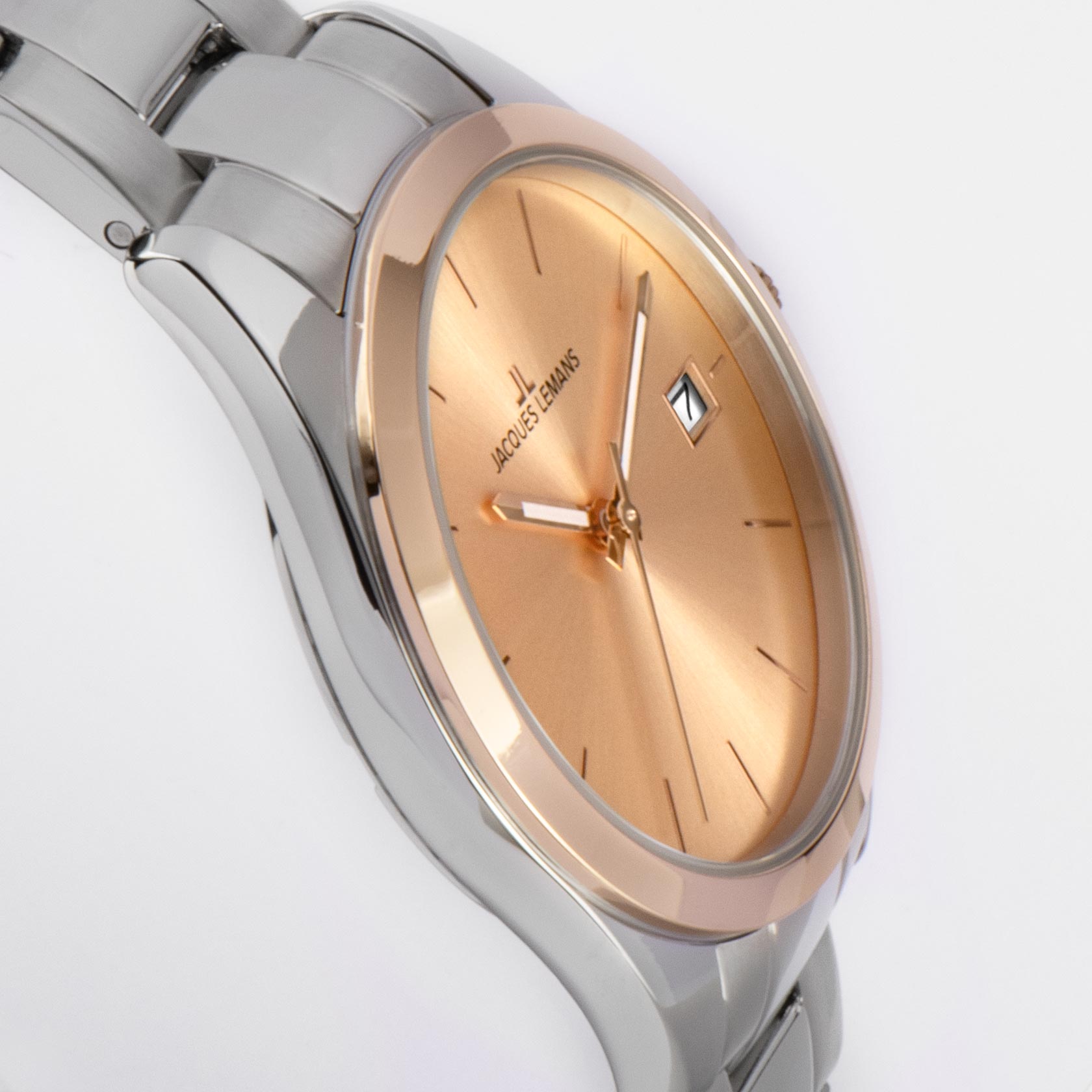 Женские часы Jacques Lemans Classic 1-1878F с минеральным стекломМинеральное стеклоМинеральное стекло представляет собой искусственно выращенный минерал кварца. Такое стекло отличается особой устойчивостью к повреждениям и царапинам. Уступает по некоторым качествам сапфировому стеклу., кварцевый механизм с высокой точностью. Корпус из нержавеющей стали. Неподвижный безельБезельВнешний ободок, закрепляющий стекло. В спортивных часах так называется поворотное кольцо с делениями на циферблате, выполняет роль таймера – замеряет отрезки времени на шкале. Неподвижный безель – элемент декора. Однонаправленно вращающийся безель на дайверских часах позволяет фиксировать моменты погружения и выныривания на поверхность. из нержавеющей стали с PVDPVDУльтратонкое покрытие наносится в технике вакуумного напыления, сочетает в себе нитрид титана особой прочности со слоем золота или оксида хрома. Несёт в себе декоративную или защитную функцию. покрытием. Стрелки с люминесцентным покрытиемЛюминесцентное покрытиеПозволяет считывать показания времени в темноте. Производители наносят на стрелки, часовые индексы, безель или поверхность циферблата светонакопительный состав, дающий холодное свечение.. Окошко даты расположено в позиции «3 часа». Класс водозащиты: 100 метров, позволит плавать, нырять и заниматься другими водными видами спорта. Браслет из нержавеющей стали на раскладной застёжкеРаскладная застёжкаТакой тип застёжки используется только на браслетах из металла. Она никогда не раскрывается полностью, происходит разделение на 2 и более частей. Раскладывающая застёжка снизит вероятность потери часов к минимуму..