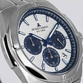Австрийские часы- хронографХронографФункция позволяет измерять отрезки времени с особой точностью: часы, минуты, секунды. Верным признаком хронографа является наличие на циферблате 3 дополнительных окошек-счётчиков.  Jacques Lemans Melbourne 1-2181B, кварцевый механизм с высокой точностью. Минеральное стеклоМинеральное стеклоМинеральное стекло представляет собой искусственно выращенный минерал кварца. Такое стекло отличается особой устойчивостью к повреждениям и царапинам. Уступает по некоторым качествам сапфировому стеклу. устойчивое к появлению царапин, обладающее высокой прозрачностью. Корпус часов изготовлен из нержавеющей стали. Стрелки с люминесцентным покрытиемЛюминесцентное покрытиеПозволяет считывать показания времени в темноте. Производители наносят на стрелки, часовые индексы, безель или поверхность циферблата светонакопительный состав, дающий холодное свечение.. Класс водозащиты: 100 метров, позволит плавать, нырять и заниматься другими водными видами спорта. Стальной браслет на раскладной застёжкеРаскладная застёжкаТакой тип застёжки используется только на браслетах из металла. Она никогда не раскрывается полностью, происходит разделение на 2 и более частей. Раскладывающая застёжка снизит вероятность потери часов к минимуму..
