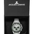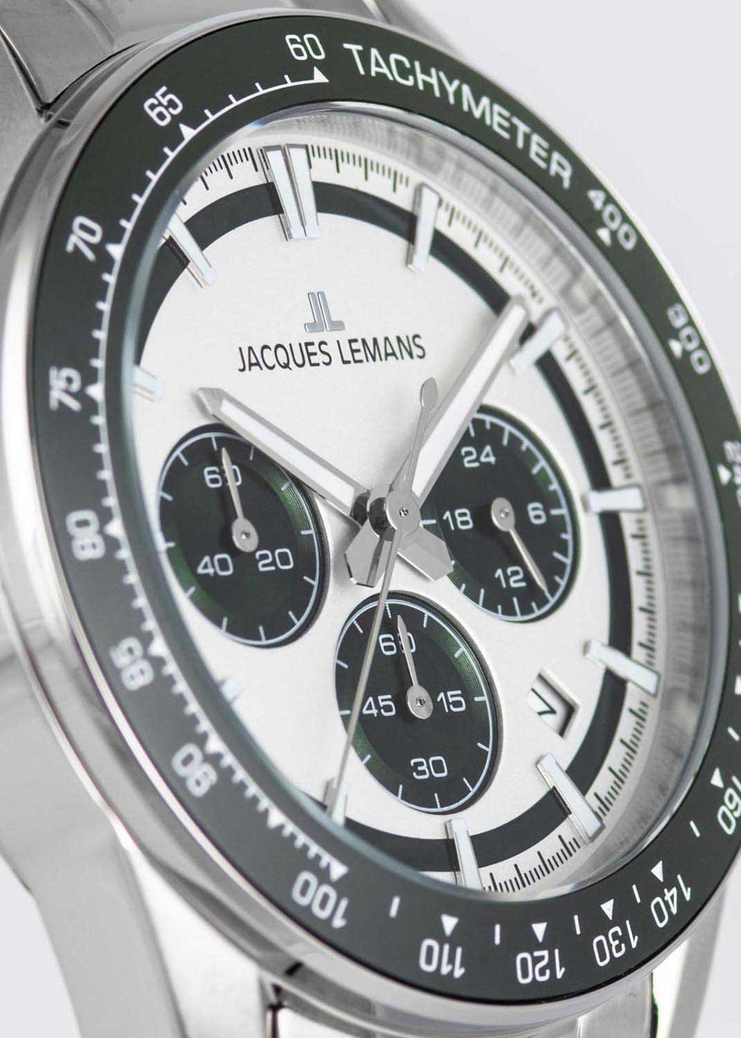 Мужские кварцевые часы-хронографХронографФункция позволяет измерять отрезки времени с особой точностью: часы, минуты, секунды. Верным признаком хронографа является наличие на циферблате 3 дополнительных окошек-счётчиков. с секундомеромСекундомерСекундоме́р — прибор, способный измерять интервалы времени с точностью до долей секунды. Jacques Lemans 1-2207E – лаконичная красота и изысканная элегантность. Оригинальная модель с классическим оформлением станет превосходным завершением образа, наделив его индивидуальным характером. Корпус выполнен из нержавеющей стали серебристого цвета, диаметром 43 мм, что обеспечивает долговечность и утончённый внешний вид. Минеральное стеклоМинеральное стеклоМинеральное стекло представляет собой искусственно выращенный минерал кварца. Такое стекло отличается особой устойчивостью к повреждениям и царапинам. Уступает по некоторым качествам сапфировому стеклу. повышенной прочности Crystex защищает циферблат от царапин. Неподвижный безельБезельВнешний ободок, закрепляющий стекло. В спортивных часах так называется поворотное кольцо с делениями на циферблате, выполняет роль таймера – замеряет отрезки времени на шкале. Неподвижный безель – элемент декора. Однонаправленно вращающийся безель на дайверских часах позволяет фиксировать моменты погружения и выныривания на поверхность. с PVD-покрытиемPVDУльтратонкое покрытие наносится в технике вакуумного напыления, сочетает в себе нитрид титана особой прочности со слоем золота или оксида хрома. Несёт в себе декоративную или защитную функцию. и тахиметромТахиметрРазмеченная шкала, располагается на ободке или безеле часов. Тахиметр позволяет рассчитать скорость на определённом участке пути, расстояние измеряется в километрах или милях.. Стальной браслет на раскладной застёжке с фиксаторомРаскладная застёжкаТакой тип застёжки используется только на браслетах из металла. Она никогда не раскрывается полностью, происходит разделение на 2 и более частей. Раскладывающая застёжка снизит вероятность потери часов к минимуму. обеспечивает комфортное ношение Водозащита 200 метров позволит плавать, нырять и заниматься другими водными видами спорта. Стрелки и метки с люминесцентным покрытиемЛюминесцентное покрытиеПозволяет считывать показания времени в темноте. Производители наносят на стрелки, часовые индексы, безель или поверхность циферблата светонакопительный состав, дающий холодное свечение. позволяющие легко определять время даже в темноте. 12-ти и 24-х часовой формат времени. Окошко даты находится в положении между 4 и 5 часами. Рифленая заводная головка с защитой. Это аксессуар для мужчины, который ценит классический стиль и функциональность.