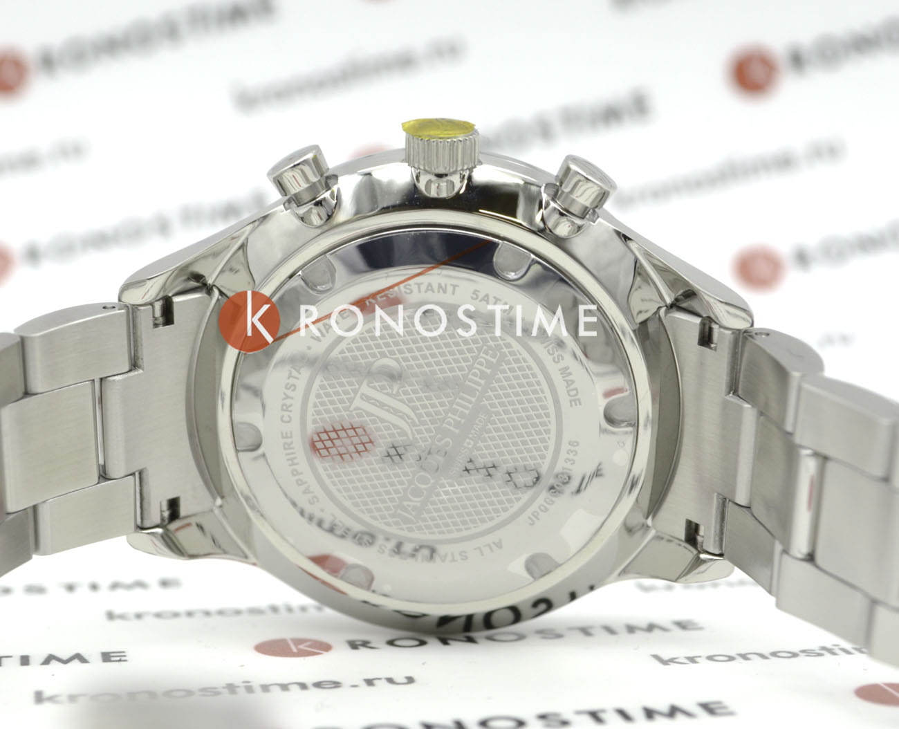 Швейцарские мужские часы-хронографХронографФункция позволяет измерять отрезки времени с особой точностью: часы, минуты, секунды. Верным признаком хронографа является наличие на циферблате 3 дополнительных окошек-счётчиков. Jacques Philippe Gallant JPQGC031336, кварцевый механизм с высокой точностью. Сапфировое стеклоСапфировое стеклоПрочный и надёжный материал из кристалла сапфира синтетического происхождения, характеризующийся особой твёрдостью и устойчивостью к царапинам и повреждениям. устойчивое к появлению царапин, обладающее высокой прозрачностью. Корпус часов изготовлен из нержавеющей стали. На циферблате три дополнительных индикатора. Стрелки с люминесцентным покрытиемЛюминесцентное покрытиеПозволяет считывать показания времени в темноте. Производители наносят на стрелки, часовые индексы, безель или поверхность циферблата светонакопительный состав, дающий холодное свечение.. Окошко даты находится между 4 и 5 часами. Класс водозащиты: 50 метров, позволит защитить корпус от случайных брызг или капель дождя. Стальной браслет на застёжке «бабочка» с кнопкамиЗастёжка "бабочка"Такой вид застёжки дополняется предохранителями, помогающими избежать случайного раскрытия браслета. Обладают изящным исполнением. .