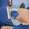 Мужские швейцарские часы-хронографХронографФункция позволяет измерять отрезки времени с особой точностью: часы, минуты, секунды. Верным признаком хронографа является наличие на циферблате 3 дополнительных окошек-счётчиков. Jaguar Executive Diver Chrono J861/2. Кварцевый швейцарский калибр Ronda 6003D. Сапфировое стеклоСапфировое стеклоПрочный и надёжный материал из кристалла сапфира синтетического происхождения, характеризующийся особой твёрдостью и устойчивостью к царапинам и повреждениям. устойчивое к мелким механическим повреждениям. Корпус и браслет часов изготовлены из нержавеющей стали. Стрелки и метки с люминесцентным покрытиемЛюминесцентное покрытиеПозволяет считывать показания времени в темноте. Производители наносят на стрелки, часовые индексы, безель или поверхность циферблата светонакопительный состав, дающий холодное свечение.. Окошко даты находится в положении между «4» и «5 часами». Класс водозащиты: 200 метров, позволит плавать, нырять и заниматься другими водными видами спорта. Стальной браслет на раскладной застёжкеРаскладная застёжкаТакой тип застёжки используется только на браслетах из металла. Она никогда не раскрывается полностью, происходит разделение на 2 и более частей. Раскладывающая застёжка снизит вероятность потери часов к минимуму.. БезельБезельВнешний ободок, закрепляющий стекло. В спортивных часах так называется поворотное кольцо с делениями на циферблате, выполняет роль таймера – замеряет отрезки времени на шкале. Неподвижный безель – элемент декора. Однонаправленно вращающийся безель на дайверских часах позволяет фиксировать моменты погружения и выныривания на поверхность. с PVD-покрытиемPVDУльтратонкое покрытие наносится в технике вакуумного напыления, сочетает в себе нитрид титана особой прочности со слоем золота или оксида хрома. Несёт в себе декоративную или защитную функцию..