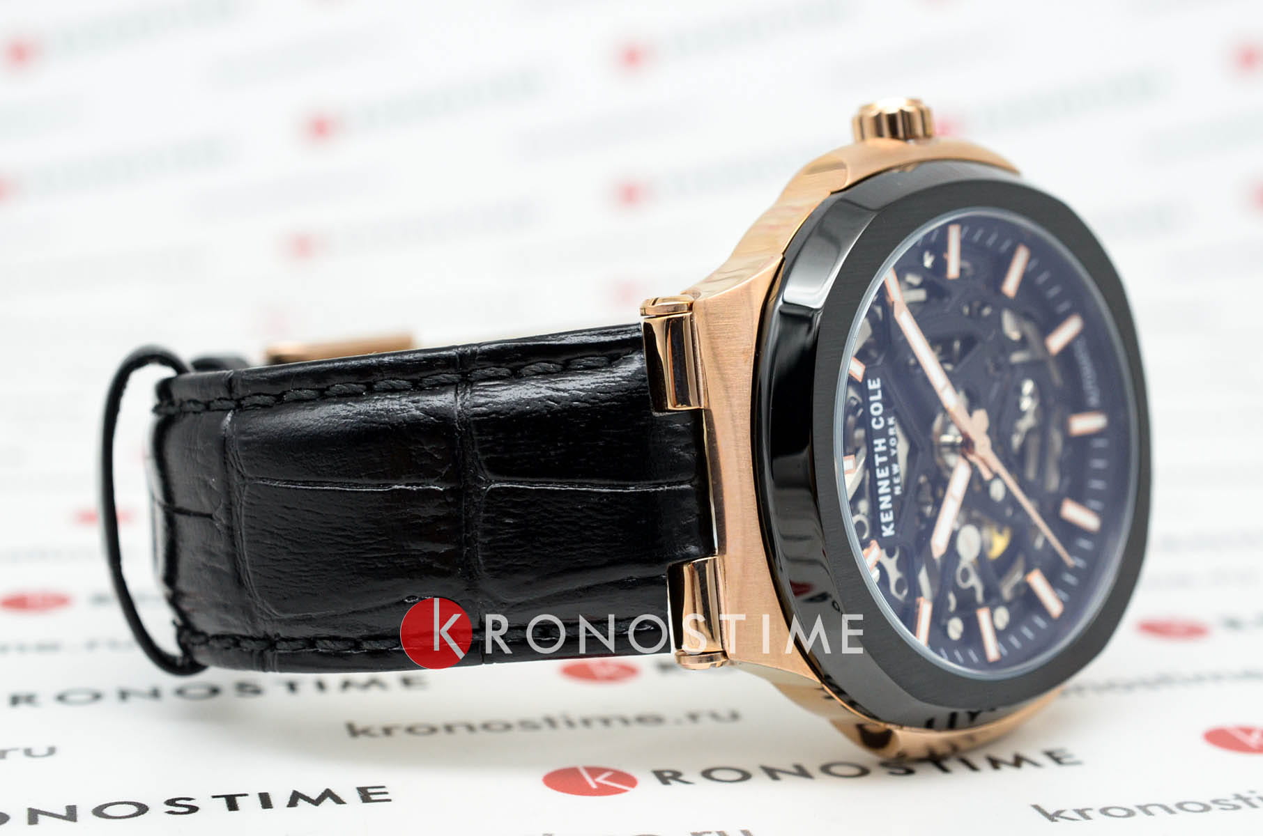 Мужские механические часы с автоподзаводом Kenneth Cole KCWGX0046204 — это выразительный аксессуар, сочетающий современный дизайн и инженерную изысканность. Корпус размером 44 мм выполнен из стали с IP-покрытиемIP-покрытиеМетод ионного напыления. Демонстрирует повышенную устойчивость к истиранию, окислению и химическим веществам. Под воздействием высокого давления и температуры около 1500°C молекулы металла надёжно соединяются с частицами корпуса часов. розового золота. Циферблат чёрного цвета частично скелетонизирован, что позволяет наблюдать за работой механизма, добавляя модели динамики и технологичности. Циферблат защищён минеральным стекломМинеральное стеклоМинеральное стекло представляет собой искусственно выращенный минерал кварца. Такое стекло отличается особой устойчивостью к повреждениям и царапинам. Уступает по некоторым качествам сапфировому стеклу. и оформлен метками в виде штрихом. Стрелки и метки оснащены люминесцентным покрытиемЛюминесцентное покрытиеПозволяет считывать показания времени в темноте. Производители наносят на стрелки, часовые индексы, безель или поверхность циферблата светонакопительный состав, дающий холодное свечение., обеспечивающим хорошую читаемость в темноте. Часы оснащены ремешком из натуральной кожи чёрного цвета с классической пряжкой. Водонепроницаемость 30 м позволяет использовать часы в повседневных условиях, защищая от случайных брызг и капель дождя. Сочетание строгого стиля и детального исполнения делает эти часы заметным элементом образа.