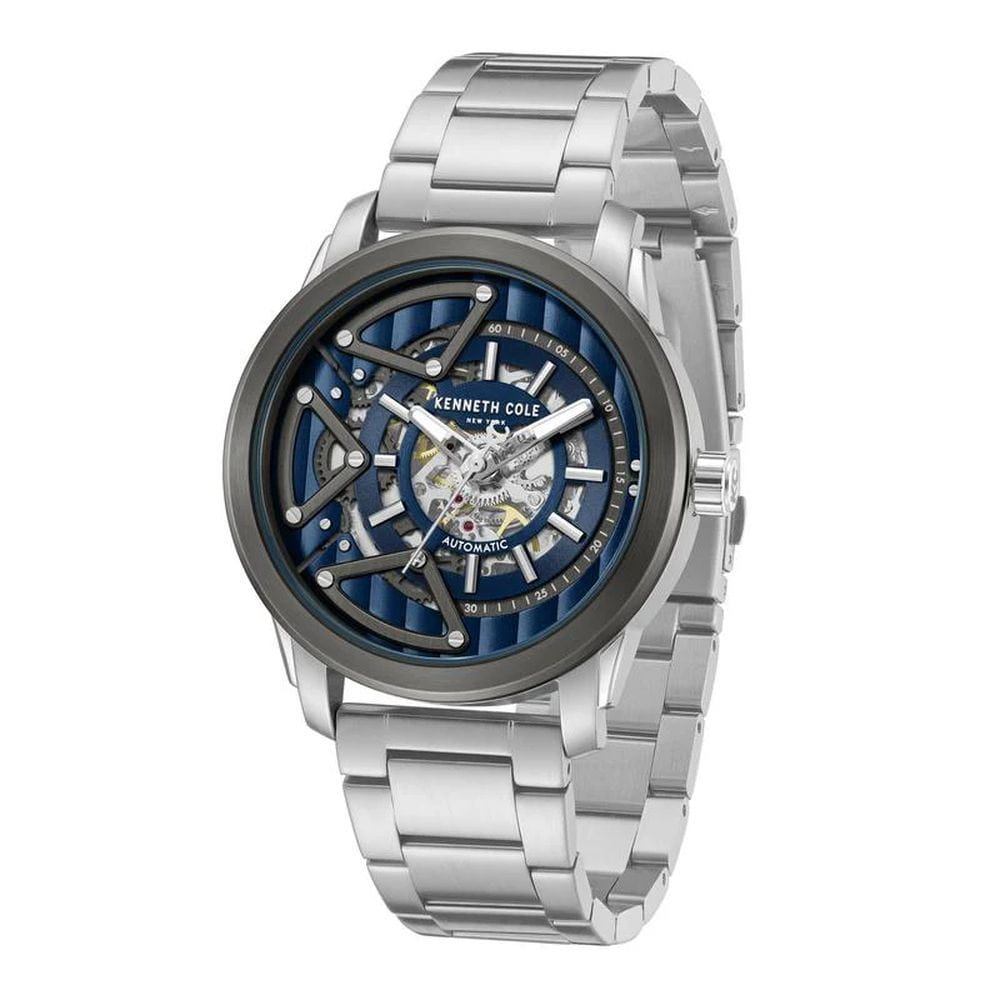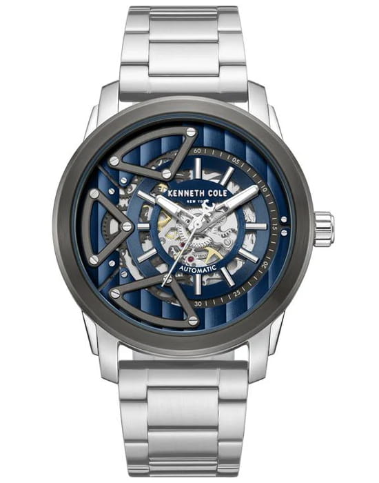 Kenneth Cole KCWGY0064903 — мужская автоматическая модель с эффектным современным дизайном и открытым скелетонизированным циферблатом. Корпус выполнен из нержавеющей стали и дополнен стальным браслетом на раскладной застёжкеРаскладная застёжкаТакой тип застёжки используется только на браслетах из металла. Она никогда не раскрывается полностью, происходит разделение на 2 и более частей. Раскладывающая застёжка снизит вероятность потери часов к минимуму., которая обеспечивает комфортное прилегание. БезельБезельВнешний ободок, закрепляющий стекло. В спортивных часах так называется поворотное кольцо с делениями на циферблате, выполняет роль таймера – замеряет отрезки времени на шкале. Неподвижный безель – элемент декора. Однонаправленно вращающийся безель на дайверских часах позволяет фиксировать моменты погружения и выныривания на поверхность. с PVD-покрытиемPVDУльтратонкое покрытие наносится в технике вакуумного напыления, сочетает в себе нитрид титана особой прочности со слоем золота или оксида хрома. Несёт в себе декоративную или защитную функцию.. Конструкция циферблата открывает вид на работу автоматического механизма, позволяя наблюдать за его движением. Cтрелки покрыты люминесцентным покрытиемЛюминесцентное покрытиеПозволяет считывать показания времени в темноте. Производители наносят на стрелки, часовые индексы, безель или поверхность циферблата светонакопительный состав, дающий холодное свечение. для читаемости в условиях недостаточного освещения. Защитную функцию выполняет минеральное стеклоМинеральное стеклоМинеральное стекло представляет собой искусственно выращенный минерал кварца. Такое стекло отличается особой устойчивостью к повреждениям и царапинам. Уступает по некоторым качествам сапфировому стеклу., устойчивое к повседневным повреждениям. Водозащита 5 ATM защищает модель от случайных брызг и дождя.