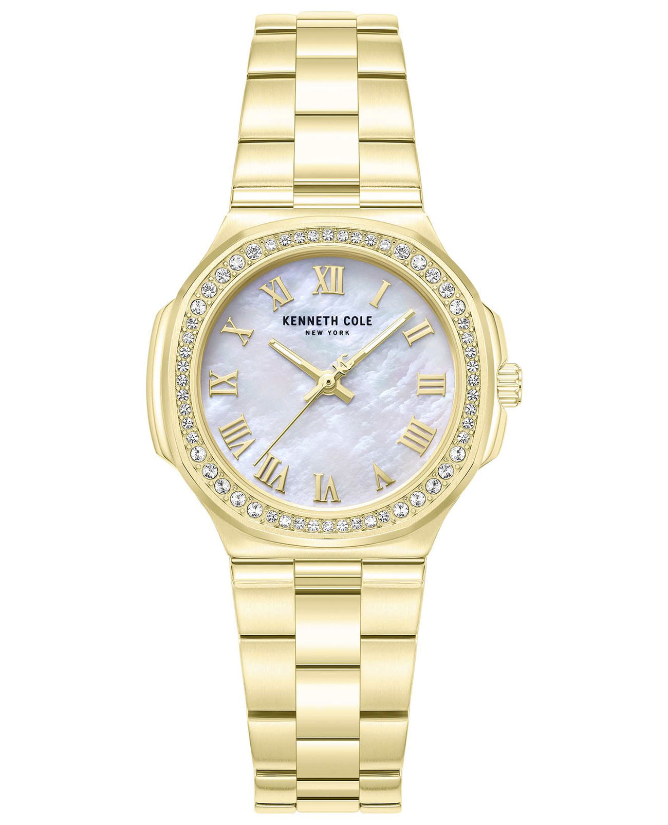 Женские кварцевые часы Kenneth Cole — это элегантный и выразительный аксессуар. Корпус диаметром 33 мм выполнен из нержавеющей стали 316L с IP-покрытиемIP-покрытиеМетод ионного напыления. Демонстрирует повышенную устойчивость к истиранию, окислению и химическим веществам. Под воздействием высокого давления и температуры около 1500°C молекулы металла надёжно соединяются с частицами корпуса часов.. Циферблат светло-перламутрового цвета оформлен индексами и украшен цирконами. Циферблат защищён минеральным стекломМинеральное стеклоМинеральное стекло представляет собой искусственно выращенный минерал кварца. Такое стекло отличается особой устойчивостью к повреждениям и царапинам. Уступает по некоторым качествам сапфировому стеклу.. Часы оснащены стальным браслетом с IP-покрытиемIP-покрытиеМетод ионного напыления. Демонстрирует повышенную устойчивость к истиранию, окислению и химическим веществам. Под воздействием высокого давления и температуры около 1500°C молекулы металла надёжно соединяются с частицами корпуса часов. на раскладной застёжкеРаскладная застёжкаТакой тип застёжки используется только на браслетах из металла. Она никогда не раскрывается полностью, происходит разделение на 2 и более частей. Раскладывающая застёжка снизит вероятность потери часов к минимуму.. Водонепроницаемость 30 м позволяет использовать часы в повседневных условиях. Идеальный выбор для тех, кто ценит стиль, блеск и американское качество.