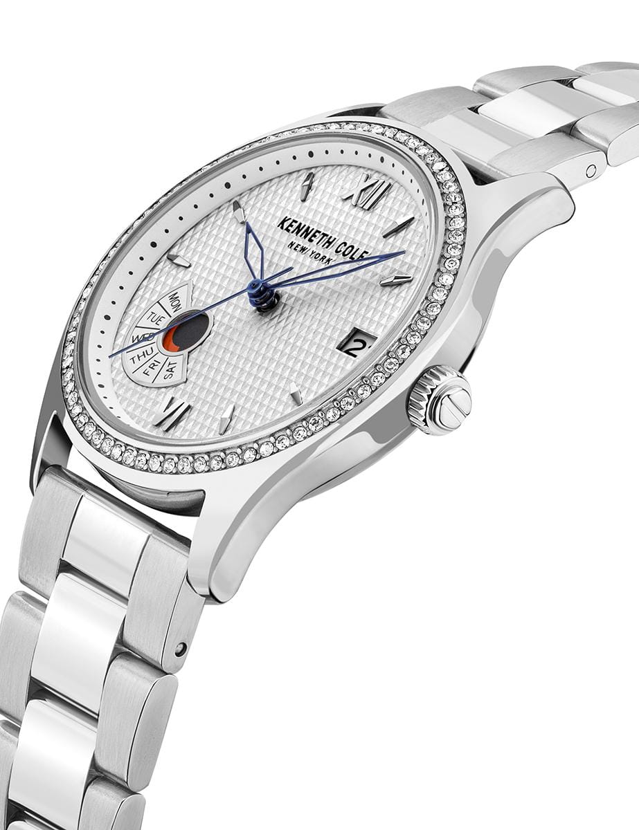 Женские кварцевые часы с минеральным стеклом Kenneth Cole Dress Sport KCWLH2123903, кварцевый механизм с высокой точностью. Класс водозащиты: 30 метров, позволит защитить корпус от случайных брызг или капель дождя. Корпус часов изготовлен из стали, серебристого цвета.