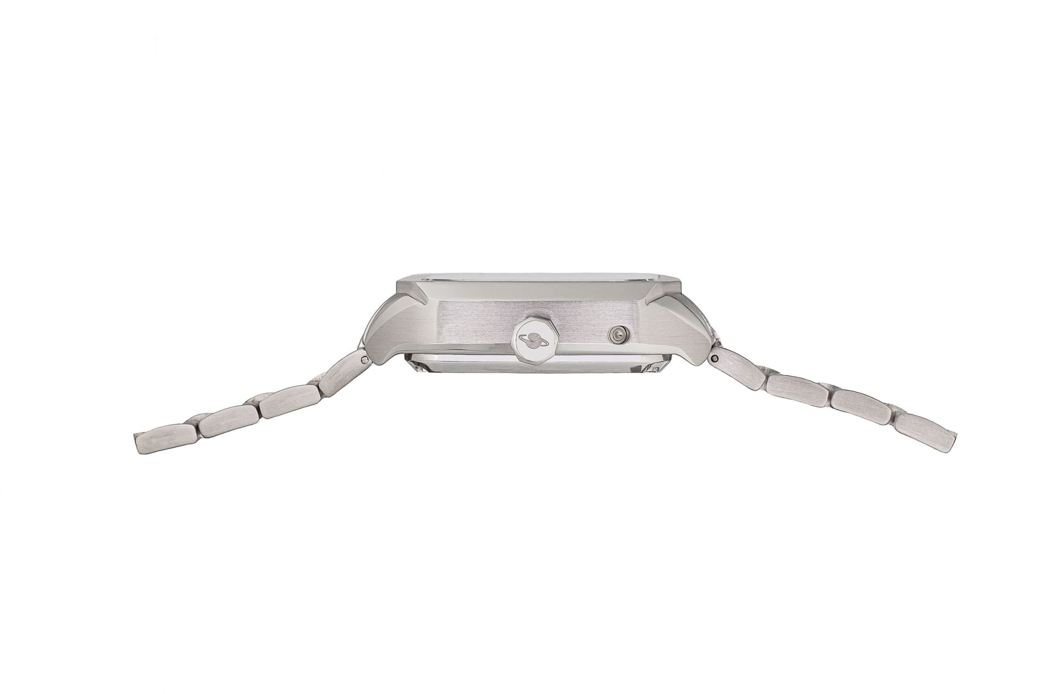 Мужские наручные часы Космос Марсоход II K 219.10.31 — это уникальная лимитированная серия, посвященная аппарату, способному передвигаться по поверхности Красной планеты. Марсоход ассоциируется с брутальностью, мастерством и технической сложностью. Наша страна дважды запускала подобные аппараты еще в 70-х годах прошлого века. Дизайн часов серии Марсоход вдохновлен лучшими работами советских мастеров, сочетая современные технологии часового искусства с обаянием стиля ретро. Корпус в форме квадрата с закругленными углами выполнен из нержавеющей стали украшенной зеркальной полировкой и сатинированием. Удобная заводная головка имеет форму гайки, что добавляет модели индустриальный шарм. Задняя крышка прозрачная, закрепленная на четырех винтах, и позволяет увидеть работу механизма TMI с подвижным ротором, на котором гравируется надпись «Сделано в России». Также здесь представлена гравировка с изображением космонавта, придающая часам особую значимость. Водостойкость достигает 10 атм (WR100), что позволяет использовать часы при плавании и других водных видах спорта. На задней крышке указан индивидуальный номер модели в формате от 01/50 до 50/50. Объемный циферблат состоит из двух уровней. В центре движутся три стрелки, часовая и минутная из которых имеют люминесцентное покрытиеЛюминесцентное покрытиеПозволяет считывать показания времени в темноте. Производители наносят на стрелки, часовые индексы, безель или поверхность циферблата светонакопительный состав, дающий холодное свечение., позволяющее определять время даже в темноте. Также, здесь расположили три дополнительных индикатора: день недели, месяц и время в формате 24-х часов. Для обозначения дня недели и месяца используется кириллица. Окошко даты между 4 и 5 часами выделено накладной рамкой. Циферблат защищен прочным сапфировым стеклом с антибликовым покрытиемСапфировое стеклоПрочный и надёжный материал из кристалла сапфира синтетического происхождения, характеризующийся особой твёрдостью и устойчивостью к царапинам и повреждениям., обеспечивающим отличную читаемость показаний в любых условиях. Второй уровень декорирован гильоше в виде солнечных лучей, на нем закреплены накладные индексы. Браслет изготовлен из литых стальных звеньев нержавеющей стали и оснащен удобной застёжкой «бабочка» с кнопкамиЗастёжка "бабочка"Такой вид застёжки дополняется предохранителями, помогающими избежать случайного раскрытия браслета. Обладают изящным исполнением. , которая сводит к минимуму вероятность потери. Заводная головка, застежка и браслет украшены фирменным логотипом бренда. Коллекция Марсоход — идеальный выбор для ценителей истории космических достижений и современных технологий.