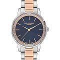 Женские часы Lee Cooper LC07229.590 — это стильное сочетание элегантности и современного дизайна. Круглый корпус диаметром 34 мм выполнен из суперметалла в серебристом и розово-золотом оттенках, а безельБезельВнешний ободок, закрепляющий стекло. В спортивных часах так называется поворотное кольцо с делениями на циферблате, выполняет роль таймера – замеряет отрезки времени на шкале. Неподвижный безель – элемент декора. Однонаправленно вращающийся безель на дайверских часах позволяет фиксировать моменты погружения и выныривания на поверхность. украшен кристаллами, придающими модели особый блеск. Синий циферблат защищен минеральным стекломМинеральное стеклоМинеральное стекло представляет собой искусственно выращенный минерал кварца. Такое стекло отличается особой устойчивостью к повреждениям и царапинам. Уступает по некоторым качествам сапфировому стеклу., обеспечивающим устойчивость к царапинам. Часы оснащены надежным кварцевым механизмом, а металлический браслет с раскладной застёжкойРаскладная застёжкаТакой тип застёжки используется только на браслетах из металла. Она никогда не раскрывается полностью, происходит разделение на 2 и более частей. Раскладывающая застёжка снизит вероятность потери часов к минимуму. гарантирует комфортную посадку на запястье. Водозащита 30 метров защищает модель от случайных брызг и дождя. Lee Cooper LC07229.590 — отличный выбор для тех, кто ценит утонченность и качество.