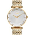 Женские наручные часы Lee Cooper LC07410.130 — это элегантная модель с утончённым дизайном. Корпус диаметром 33 мм выполнен из нержавеющей стали с IP-покрытиемIP-покрытиеМетод ионного напыления. Демонстрирует повышенную устойчивость к истиранию, окислению и химическим веществам. Под воздействием высокого давления и температуры около 1500°C молекулы металла надёжно соединяются с частицами корпуса часов., что придаёт часам изысканный вид. Перламутровый циферблат украшен изящными метками из кристаллов и стрелками, обеспечивая удобное считывание времени. Циферблат защищён минеральным стекломМинеральное стеклоМинеральное стекло представляет собой искусственно выращенный минерал кварца. Такое стекло отличается особой устойчивостью к повреждениям и царапинам. Уступает по некоторым качествам сапфировому стеклу., устойчивым к царапинам. Часы работают на кварцевом механизме, обеспечивая точность хода. Браслет из нержавеющей стали с раскладной застёжкойРаскладная застёжкаТакой тип застёжки используется только на браслетах из металла. Она никогда не раскрывается полностью, происходит разделение на 2 и более частей. Раскладывающая застёжка снизит вероятность потери часов к минимуму. гарантирует комфортное ношение и надёжную фиксацию на запястье. Водозащита 30 метров защищает часы от случайных брызг и дождя, делая их подходящими для повседневного использования.