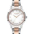 Женские наручные часы Lee Cooper LC07457.520 — это элегантная модель с утончённым дизайном. Корпус диаметром 34 мм выполнен из суперметалла, что придаёт часам изысканный вид. Серебристый циферблат украшен изящными вставками из кристаллов и стрелками, обеспечивая удобное считывание времени. Циферблат защищён минеральным стекломМинеральное стеклоМинеральное стекло представляет собой искусственно выращенный минерал кварца. Такое стекло отличается особой устойчивостью к повреждениям и царапинам. Уступает по некоторым качествам сапфировому стеклу., устойчивым к царапинам. Часы работают на кварцевом механизме, обеспечивая точность хода. Браслет из нержавеющей стали с раскладной застёжкойРаскладная застёжкаТакой тип застёжки используется только на браслетах из металла. Она никогда не раскрывается полностью, происходит разделение на 2 и более частей. Раскладывающая застёжка снизит вероятность потери часов к минимуму. гарантирует комфортное ношение и надёжную фиксацию на запястье. Водозащита 30 метров защищает часы от случайных брызг и дождя, делая их подходящими для повседневного использования. БезельБезельВнешний ободок, закрепляющий стекло. В спортивных часах так называется поворотное кольцо с делениями на циферблате, выполняет роль таймера – замеряет отрезки времени на шкале. Неподвижный безель – элемент декора. Однонаправленно вращающийся безель на дайверских часах позволяет фиксировать моменты погружения и выныривания на поверхность. с частичным IP-покрытиемIP-покрытиеМетод ионного напыления. Демонстрирует повышенную устойчивость к истиранию, окислению и химическим веществам. Под воздействием высокого давления и температуры около 1500°C молекулы металла надёжно соединяются с частицами корпуса часов..