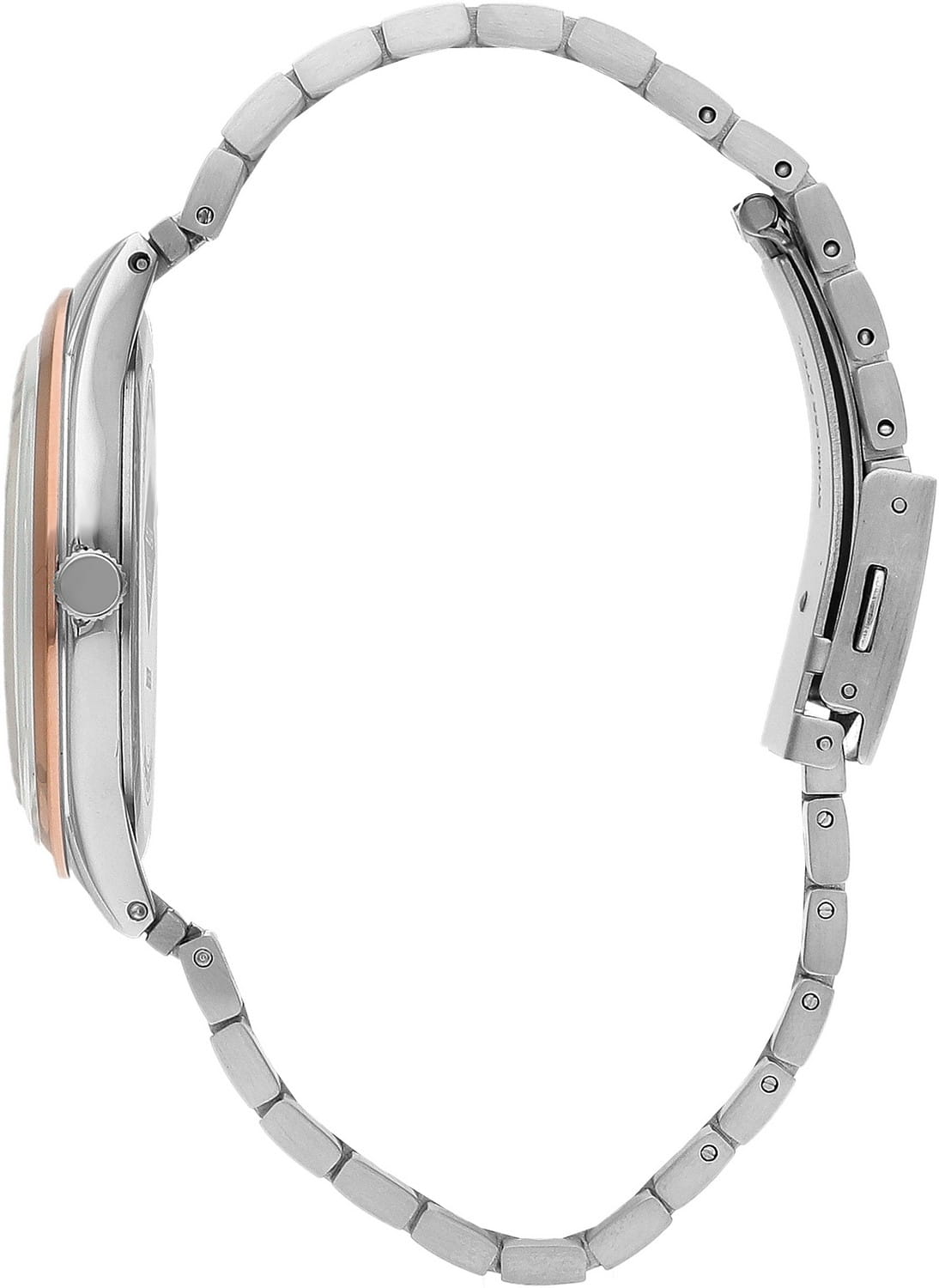 Мужские часы Lee Cooper LC07630.230 – это стильная модель, которая сочетает в себе современный дизайн и высокую функциональность. Часы идеально подходят для ежедневного ношения и могут стать отличным дополнением к любому наряду. Элегантный корпус часов диаметром 44 мм выполнен из суперметалла, а неподвижный безельБезельВнешний ободок, закрепляющий стекло. В спортивных часах так называется поворотное кольцо с делениями на циферблате, выполняет роль таймера – замеряет отрезки времени на шкале. Неподвижный безель – элемент декора. Однонаправленно вращающийся безель на дайверских часах позволяет фиксировать моменты погружения и выныривания на поверхность. с IP-покрытиемIP-покрытиеМетод ионного напыления. Демонстрирует повышенную устойчивость к истиранию, окислению и химическим веществам. Под воздействием высокого давления и температуры около 1500°C молекулы металла надёжно соединяются с частицами корпуса часов. придает модели особый блеск. Минеральное стеклоМинеральное стеклоМинеральное стекло представляет собой искусственно выращенный минерал кварца. Такое стекло отличается особой устойчивостью к повреждениям и царапинам. Уступает по некоторым качествам сапфировому стеклу. защищает изысканный циферблат от царапин, сохраняя его безупречный вид. Циферблат дополнен аккуратными метками и стрелками с люминесцентным покрытиемЛюминесцентное покрытиеПозволяет считывать показания времени в темноте. Производители наносят на стрелки, часовые индексы, безель или поверхность циферблата светонакопительный состав, дающий холодное свечение., что гарантирует читаемость даже в условиях недостаточного освещения. Часы оснащены функцией отображения даты на позиции «3 часа». Механизм часов гарантирует точный ход и надежную работу, а надежный браслет из нержавеющей стали с IP-покрытиемIP-покрытиеМетод ионного напыления. Демонстрирует повышенную устойчивость к истиранию, окислению и химическим веществам. Под воздействием высокого давления и температуры около 1500°C молекулы металла надёжно соединяются с частицами корпуса часов. с раскладной застёжкойРаскладная застёжкаТакой тип застёжки используется только на браслетах из металла. Она никогда не раскрывается полностью, происходит разделение на 2 и более частей. Раскладывающая застёжка снизит вероятность потери часов к минимуму. обеспечивает комфортную фиксацию на запястье. Модель LC07630.230 станет прекрасным выбором для тех, кто ценит стиль и качество в аксессуарах.