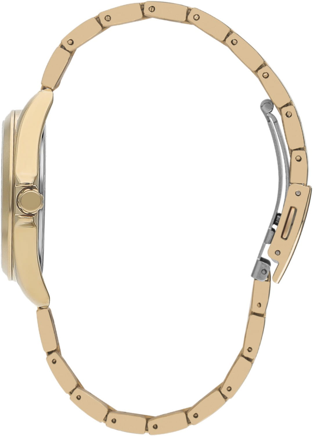 Женские часы Lee Cooper LC07685.130 — это стильное сочетание элегантности и современного дизайна. Круглый корпус диаметром 36 мм выполнен из суперметалла с IP-покрытиемIP-покрытиеМетод ионного напыления. Демонстрирует повышенную устойчивость к истиранию, окислению и химическим веществам. Под воздействием высокого давления и температуры около 1500°C молекулы металла надёжно соединяются с частицами корпуса часов. золотого цвета, придающий модели особый блеск. Серебристый циферблат с золотыми индексами защищен минеральным стекломМинеральное стеклоМинеральное стекло представляет собой искусственно выращенный минерал кварца. Такое стекло отличается особой устойчивостью к повреждениям и царапинам. Уступает по некоторым качествам сапфировому стеклу., обеспечивающим устойчивость к царапинам. Часы оснащены надежным кварцевым механизмом, а стальной браслет с IP-покрытиемIP-покрытиеМетод ионного напыления. Демонстрирует повышенную устойчивость к истиранию, окислению и химическим веществам. Под воздействием высокого давления и температуры около 1500°C молекулы металла надёжно соединяются с частицами корпуса часов. на раскладной застёжкеРаскладная застёжкаТакой тип застёжки используется только на браслетах из металла. Она никогда не раскрывается полностью, происходит разделение на 2 и более частей. Раскладывающая застёжка снизит вероятность потери часов к минимуму. гарантирует комфортную посадку на запястье. Мультифункциональная модель с индикацией даты, дня недели, с дополнительным 24-х часовым индикатором. Водозащита 30 метров защищает модель от случайных брызг и дождя. Lee Cooper — это идеальный выбор для тех, кто ценит классический стиль, точность механизма и качество материалов в одном аксессуаре.