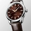 Ремешок из натуральной кожи с текстурой аллигатора дополнен классической пряжкой. Задняя крышка украшена характерным медальоном с логотипом Longines.