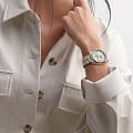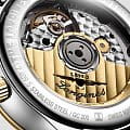 .  Циферблат с 12 бриллиантами группы Top Wesselton VS-SI общим весом 0.055 карата. Прозрачная задняя крышка. Маленький стрелочный указатель фаз Луны и даты в положении 6 часов. Класс водозащиты: 30 метров, позволит защитить корпус от случайных брызг или капель дождя. Стальной браслет 18-каратным золотом18-каратное золотоОбозначение по каратной системе пробирования, оно показывает, сколько драгоценного металла содержится в изделии. 18 карат - в составе 75% чистого золота, соответствует 750 пробе.