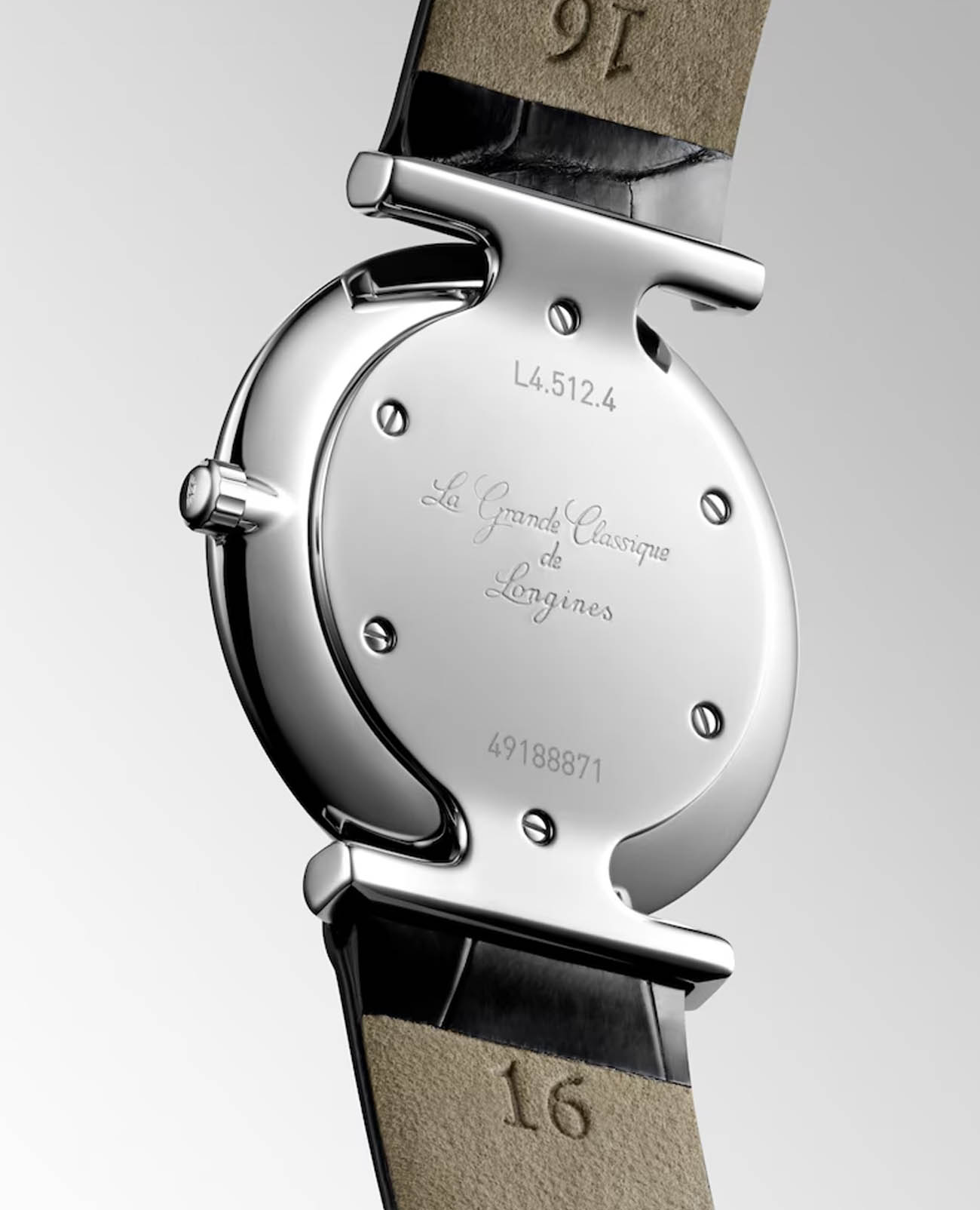 Представляем вам изысканные швейцарские кварцевые часы Longines La Grande Classique L4.512.4.11.2. Эти часы, украшенные сапфировым стеклом, не только подчеркивают ваш безупречный вкус, но и демонстрируют непревзойденное мастерство швейцарских часовщиков. Сапфировое стеклоСапфировое стеклоПрочный и надёжный материал из кристалла сапфира синтетического происхождения, характеризующийся особой твёрдостью и устойчивостью к царапинам и повреждениям., устойчивое к царапинам и обладающее исключительной прозрачностью, словно прозрачная вуаль, открывает перед вами мир точного времени.