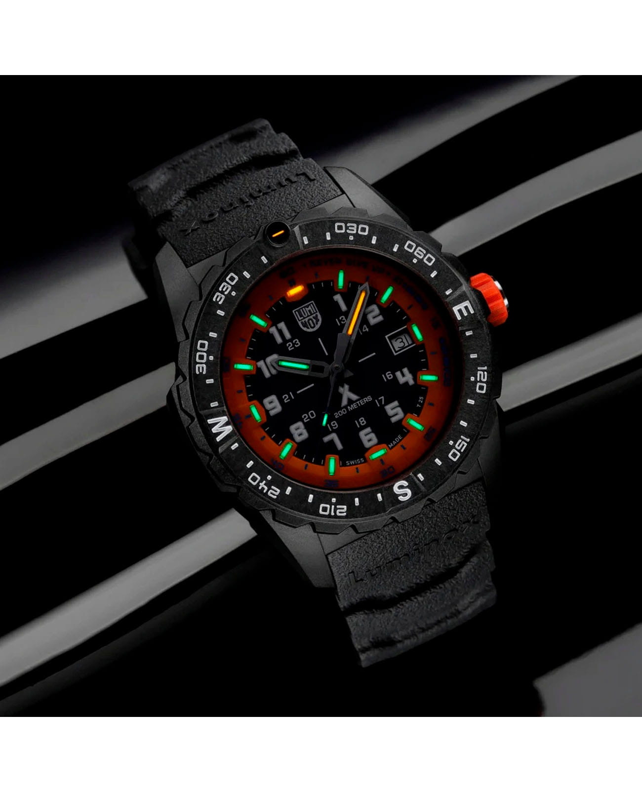 Мужские наручные часы-хронографХронографФункция позволяет измерять отрезки времени с особой точностью: часы, минуты, секунды. Верным признаком хронографа является наличие на циферблате 3 дополнительных окошек-счётчиков. Luminox Bear Grylls Survival Series XB.3739 созданы для тех, кто ценит надежность и функциональность в сложных условиях. Модель обладает круглым корпусом диаметром 43 мм, изготовленным из прочного карбонаКарбонОт «carbon», «carbone» - углерод, углепластик - полимерный композиционный материал из переплетённых под определенным углом между собой нитей углеродного волокна, применяется для изготовления лёгких, но прочных деталей. В часах часто используют для украшения циферблатов и ремешков. Так же карбон используется в изготовлении корпусов. Такие корпуса обладают антикоррозионным свойством, не поддаются электромагнитному излучению, обладают повышенной прочностью и противоударностью., что обеспечивает высокую устойчивость к внешним воздействиям при сохранении легкости конструкции. Браслет выполнен из каучука с текстурированной поверхностью, оснащен классической застежкой, гарантирующей комфортное ношение и безопасность. Циферблат серого цвета украшен крупными индексами и стрелками с люминесцентным покрытиемЛюминесцентное покрытиеПозволяет считывать показания времени в темноте. Производители наносят на стрелки, часовые индексы, безель или поверхность циферблата светонакопительный состав, дающий холодное свечение., что обеспечивает отличную видимость в темноте. Для защиты используется сапфировое стеклоСапфировое стеклоПрочный и надёжный материал из кристалла сапфира синтетического происхождения, характеризующийся особой твёрдостью и устойчивостью к царапинам и повреждениям. с антибликовым покрытиемАнтибликовое покрытиеСлой оксида металла в 0,13-0,3 микрон, благодаря которому стекло часов не бликует и не отражает свет. Антибликовое покрытие уменьшает отражение света в 10 раз, обеспечивая отличную читаемость показателей циферблата., обеспечивающее прочную защиту от царапин и четкое чтение времени даже при ярком свете. Часы работают на кварцевом механизме, который гарантирует точное время без необходимости подзаводки и имеет резерв хода батареи около 3-4 лет. Модель также оснащена односторонним вращающимся безелемБезельВнешний ободок, закрепляющий стекло. В спортивных часах так называется поворотное кольцо с делениями на циферблате, выполняет роль таймера – замеряет отрезки времени на шкале. Неподвижный безель – элемент декора. Однонаправленно вращающийся безель на дайверских часах позволяет фиксировать моменты погружения и выныривания на поверхность. с делениями для расчета времени погружения или выполнения других задач, а также функцией второго часового поясаВторой часовой поясФункция, позволяющая отображать время двух часовых поясов одновременно., что делает ее удобной для путешествий. Водонепроницаемость часов достигает 200 метров (20 атмосфер), что позволяет использовать их во время плавания, дайвинга и других водных видов спорта. Luminox XB.3739 — это не просто аксессуар, а надежный инструмент для выживания, созданный в сотрудничестве с Bear Grylls, сочетающий в себе функциональность, практичность и стиль.