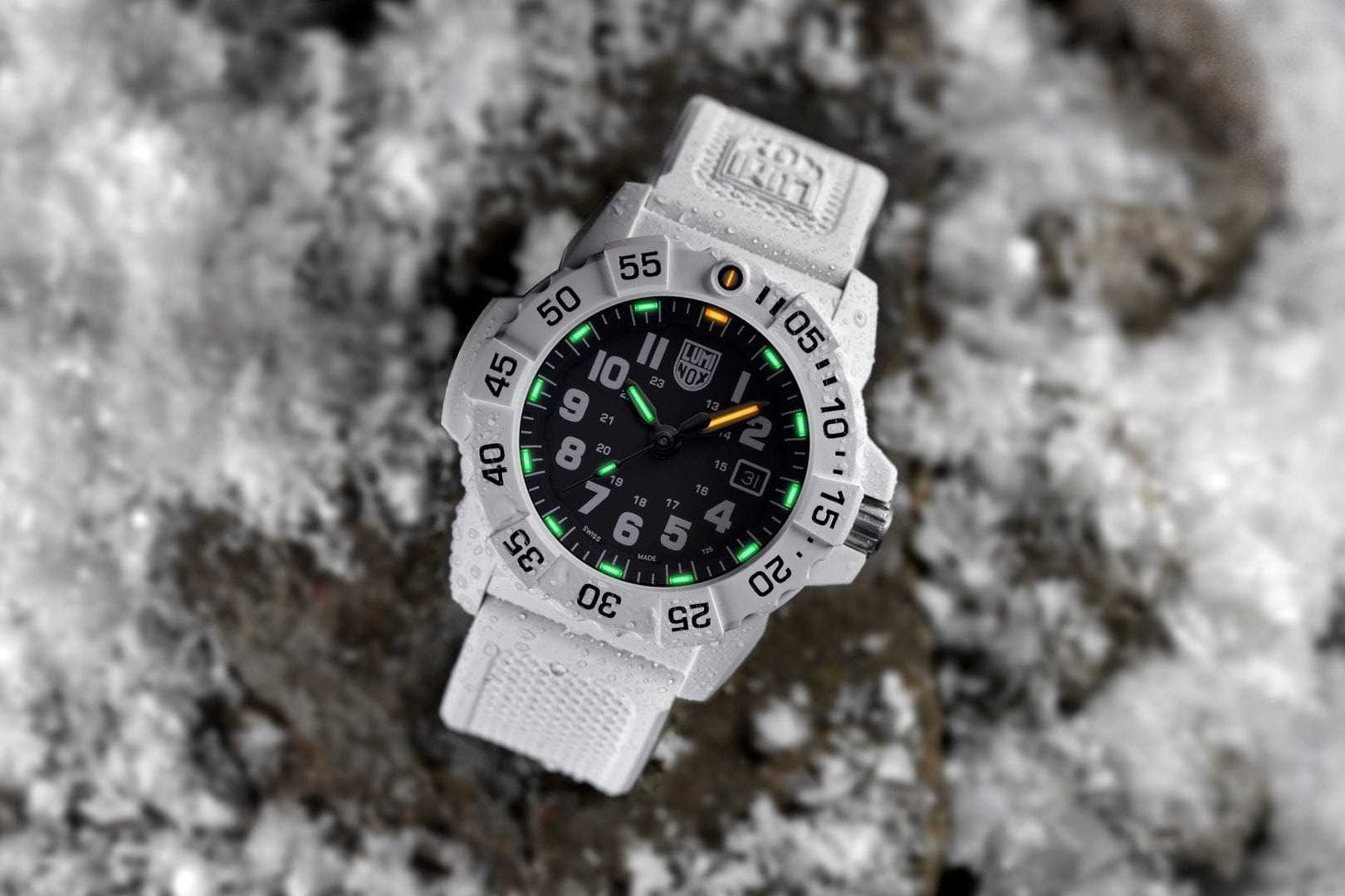 Часы Luminox XS.3507.WB — это надежные и стильные швейцарские часы с кварцевым механизмом, оснащенные калибром Ronda 515. Корпус выполнен из пластика, усиленного прессованным карбоном CARBONOX, что обеспечивает прочность и долговечность. Черный циферблат защищен минеральным стекломМинеральное стеклоМинеральное стекло представляет собой искусственно выращенный минерал кварца. Такое стекло отличается особой устойчивостью к повреждениям и царапинам. Уступает по некоторым качествам сапфировому стеклу. повышенной прочности, что делает его устойчивым к царапинам и ударам. Резиновый ремешок с классической застежкой обеспечивает комфортное ношение и надежность фиксации на запястье. Эти часы обладают впечатляющим уровнем водозащиты до 200 метров, что делает их подходящими для водных видов спорта и активного отдыха. Светящаяся метка на безелеБезельВнешний ободок, закрепляющий стекло. В спортивных часах так называется поворотное кольцо с делениями на циферблате, выполняет роль таймера – замеряет отрезки времени на шкале. Неподвижный безель – элемент декора. Однонаправленно вращающийся безель на дайверских часах позволяет фиксировать моменты погружения и выныривания на поверхность., который вращается в одном направлении, добавляет функциональности и удобства, особенно в условиях низкой освещенности. Технология LLTLLTLLT — это автономный механизм подсветки, основанный на использовании микроскопических газонаполненных элементов. Специальные герметичные капсулы из боросиликатного стекла, интегрированные в циферблат, генерируют свечение без необходимости подключения к внешним источникам энергии. Для их работы не требуется ни дополнительный свет, ни механическое воздействие (например, нажатие кнопки). Свечение возникает благодаря химическому процессу: реакция между тритием, заключенным в капсулах, и люминофорным покрытием создает стабильное автономное освещение. Технология обеспечивает энергетическую независимость и долговечность подсветки.-подсветки обеспечивает отличную видимость в темноте на протяжении 25 лет, позволяя контролировать время даже при полном отсутствии света. Часы поддерживают отображение времени в 12- и 24-часовом формате, а наличие календаря с указанием числа добавляет практичности. Заводная головка снабжена защитой и двойной уплотнительной прокладкой для обеспечения герметичности, а задняя крышка крепится на винтах для дополнительной надежности.